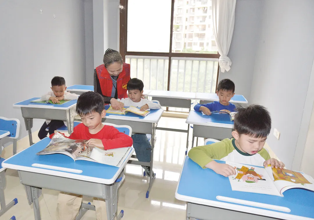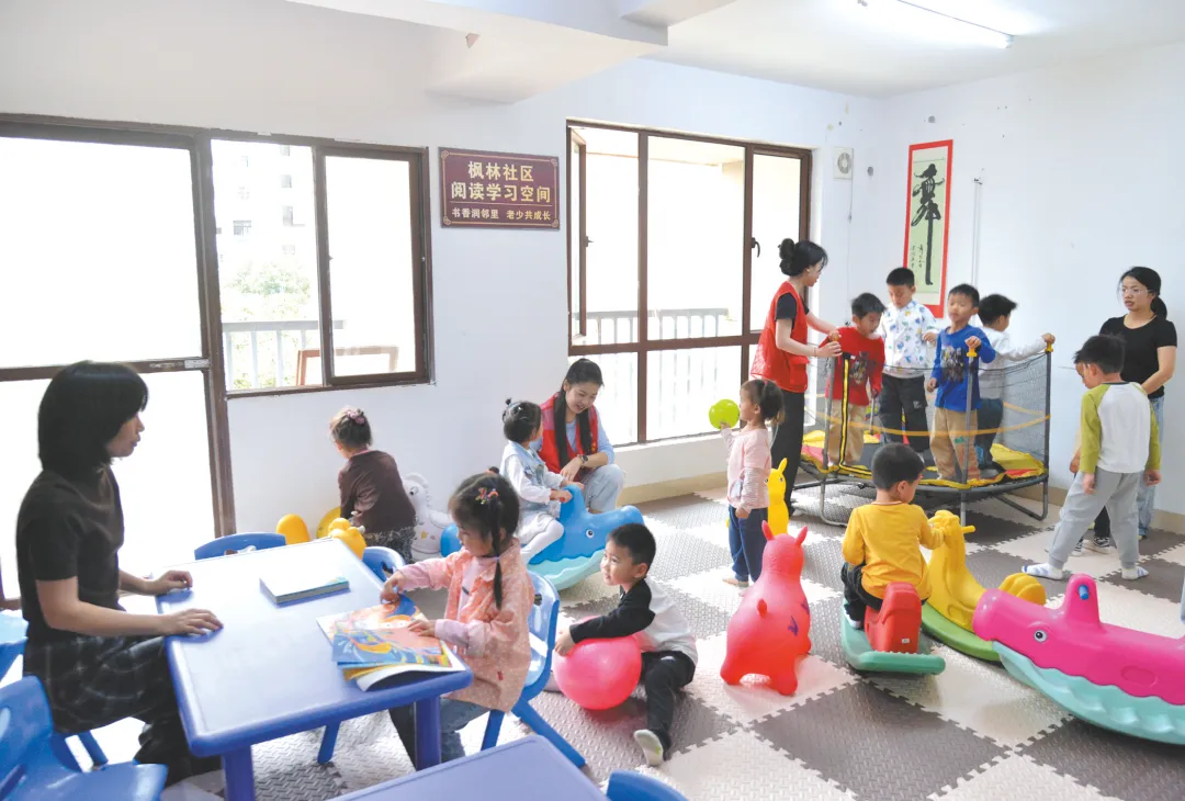在凤岭山语城,孩子们找到乐园,志愿者罗庆容陪着孩子们阅读绘本,她退休前是教育工作者,现在将热情化作志愿服务。这个由闲置用房改造的活动中心,有童趣活动室,也有清风阅读室,让不同年龄的居民在家门口遇见美好。
