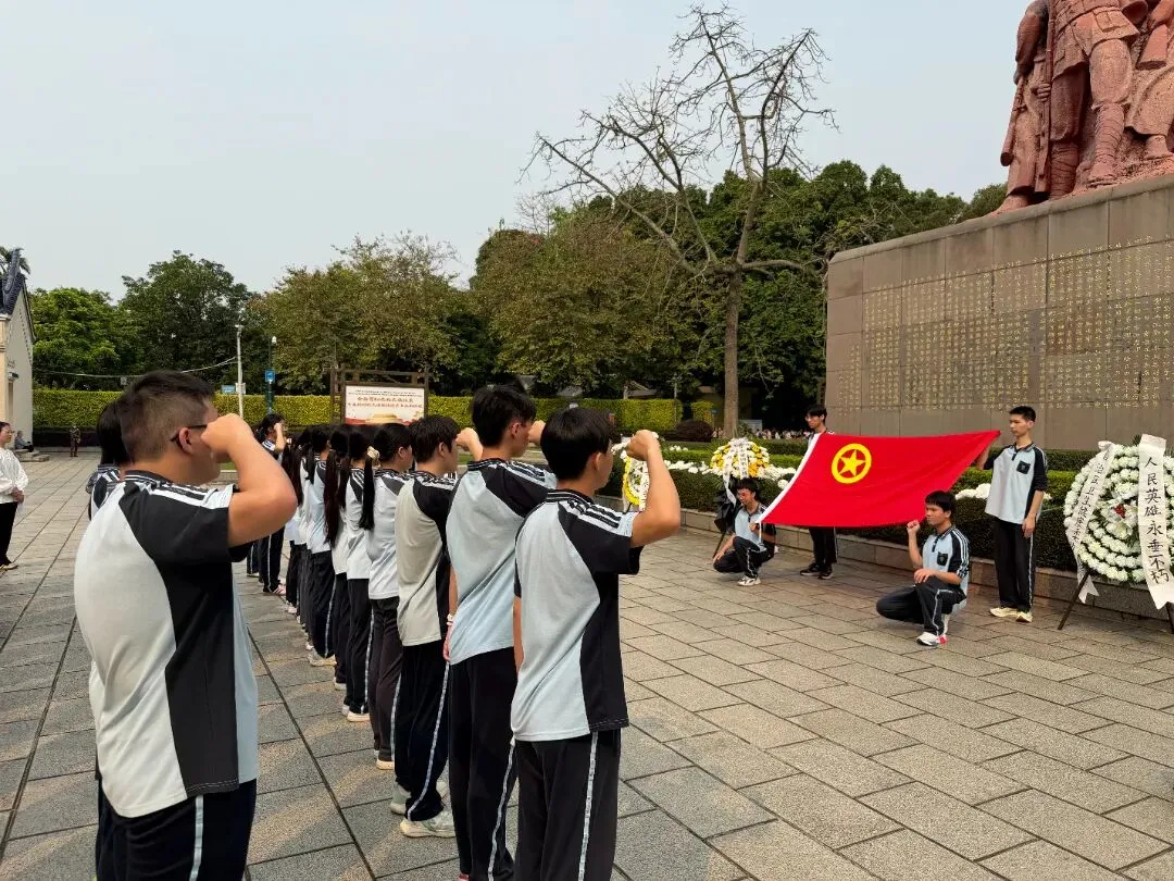 3月31日,南宁市第四职业技术学校组织师生代表前往南湖公园的李明瑞、韦拔群革命烈士纪念碑园,开展“追寻·2026·清明祭英烈”活动。活动现场,全体师生肃立默哀一分钟,向为国家和民族独立解放事业做出伟大牺牲的先烈致以哀思。随后学生代表敬献花篮,全体师生依次近前瞻仰并献花。团员代表石培祥讲述李明瑞、韦拔群的革命事迹,梁晓晴带领全体团员重温入团誓词。仪式结束,党员教师与团委书记带领团员们参观纪念馆。大家认真观看历史资料和陈列展品,聆听烈士生平,进一步学习革命先烈的初心使命与崇高精神。(林春霞/文 肖洋/图)
