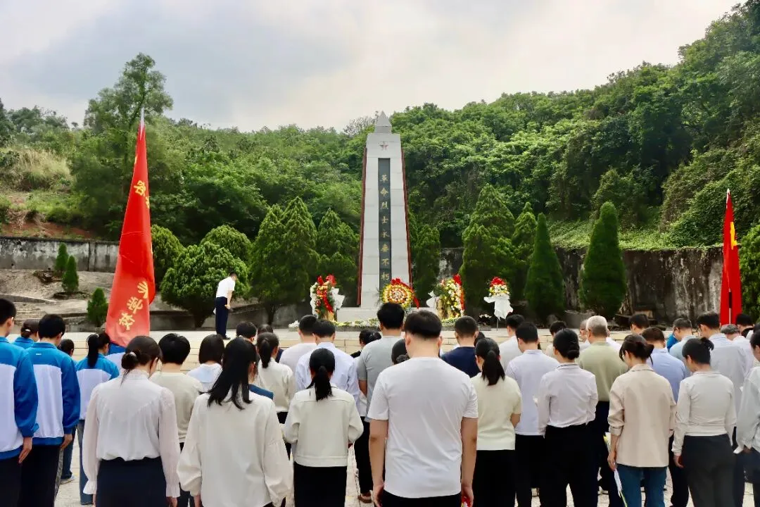 4月3日,梧州职业学院中职教学部组织党员教师及团员代表前往梧州市珠山烈士墓园、梧州市博物馆,开展“缅怀先烈守初心,赋能技能强国建设”清明祭扫暨红色研学活动。祭扫仪式现场,全体师生齐唱国歌、集体默哀,向革命先烈敬献白花,深情追思先烈丰功伟绩。党委副书记、副部长(主持行政工作)覃伟良带领党员重温入党誓词,团委书记陈晶带领团员重温入团誓词。祭扫仪式结束后,师生有序前往梧州市博物馆开展红色研学。大家在展厅内认真参观、细致学习,沉浸式感悟梧州红色历史与本土文化底蕴,在回望革命岁月中汲取奋进力量。(纪潮燕/文)
