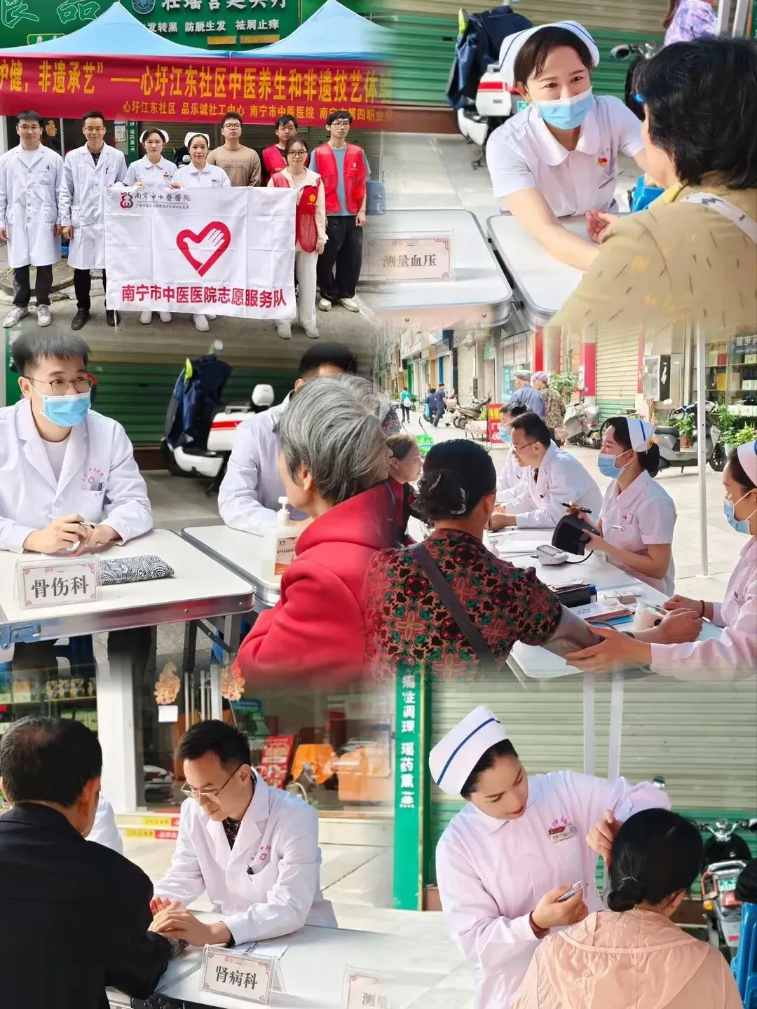 南宁市中医医院联合南宁市品乐诚社工中心及南宁市第四职业技术学校,在心圩江东社区开展“中医护健,非遗承艺”主题活动。多科室医护团队为居民提供健康咨询、血压测量及耳穴压豆等服务,并组织艾草养生锤、宋锦挂件等非遗手工体验,将中医养生与传统文化相结合,惠及居民百余人,获广泛好评。
