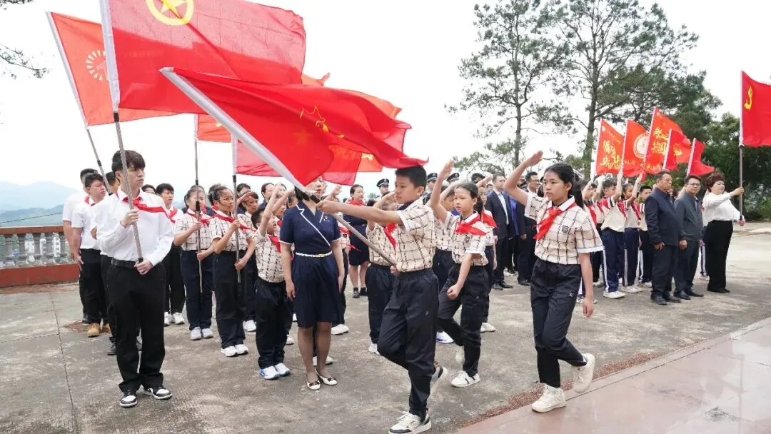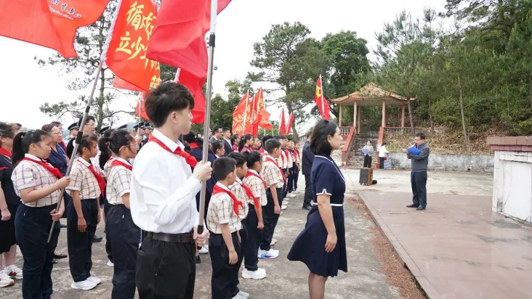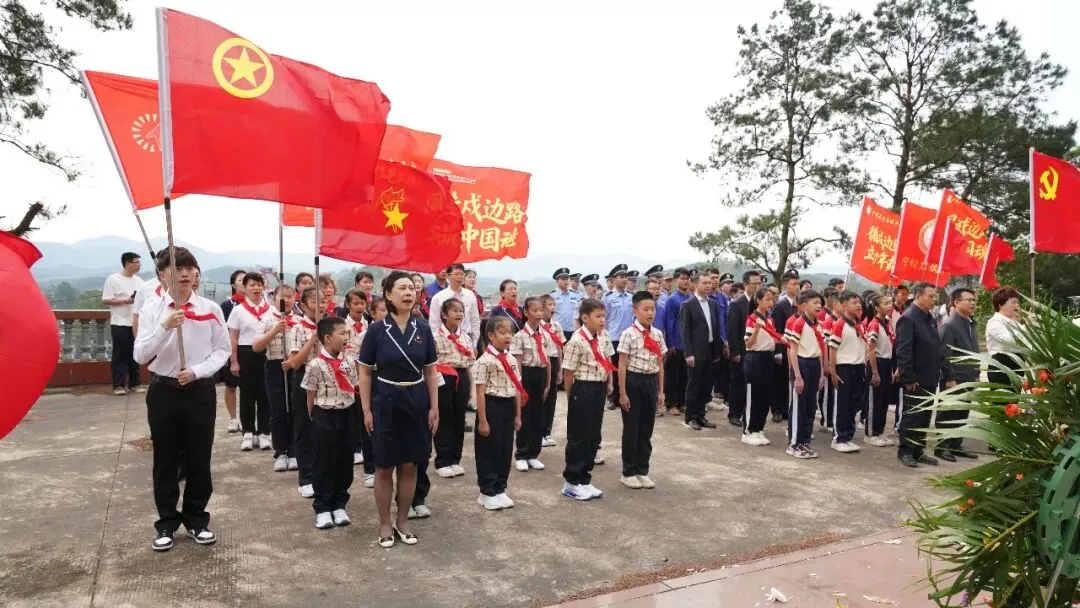 仪式环节庄重肃穆,主持人领诵祭文,全体少先队员跟诵,一字一句寄托哀思。队旗重新展开,少先队员举起右拳重温入队誓词,誓言铿锵有力。少先队辅导员黄任婷老师领呼:“准备着,为共产主义事业而奋斗!”全体少先队员齐声回应:“时刻准备着!”呼号声响彻边关。