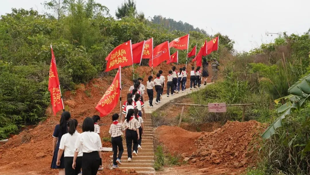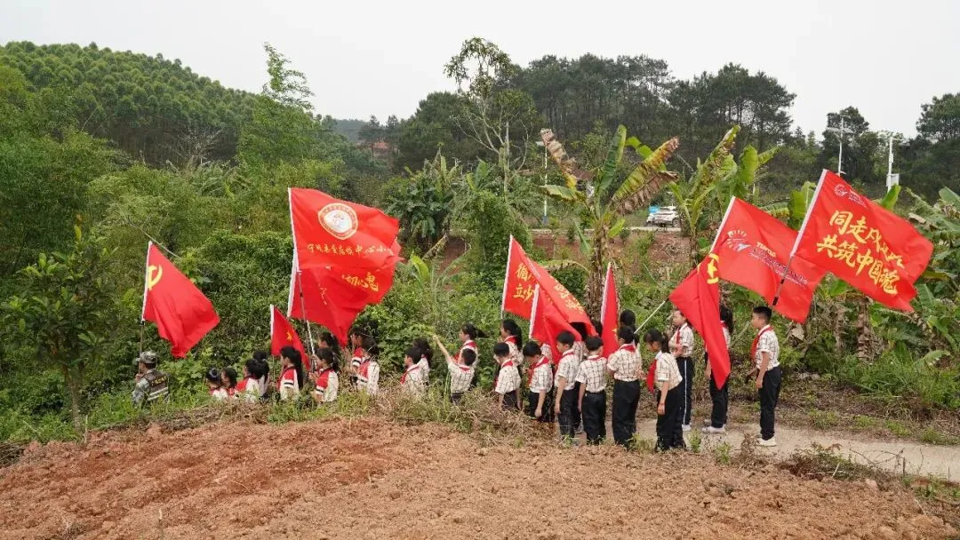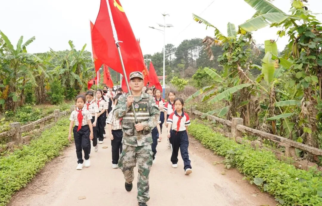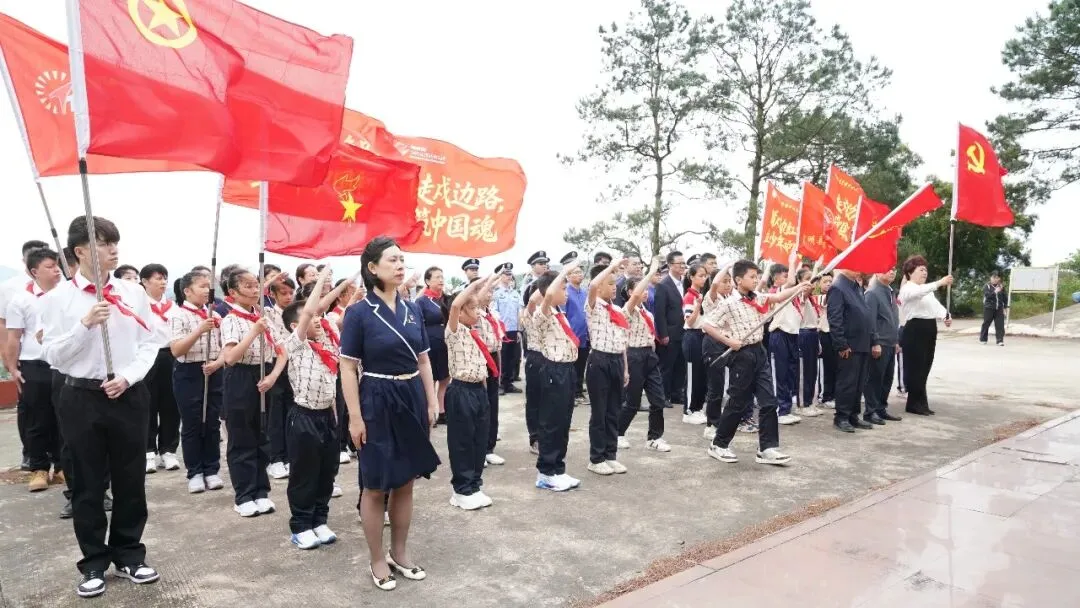 党旗引领队旗红,边关少年铸国魂。2026年4月1日至2日,宁明县爱店镇中心小学党支部联合南宁市天桃实验学校,以清明节与“广西三月三”为契机,开展了为期两天的“同走戍边路,深植中国魂”行走的思政课系列活动。活动通过祭奠英烈、国门宣誓、巡边丈量、民族团结实践四大板块,将党建带队建的育人模式延伸至边境一线,让少先队员在沉浸式体验中读懂“国门”、深植“中国魂”。
