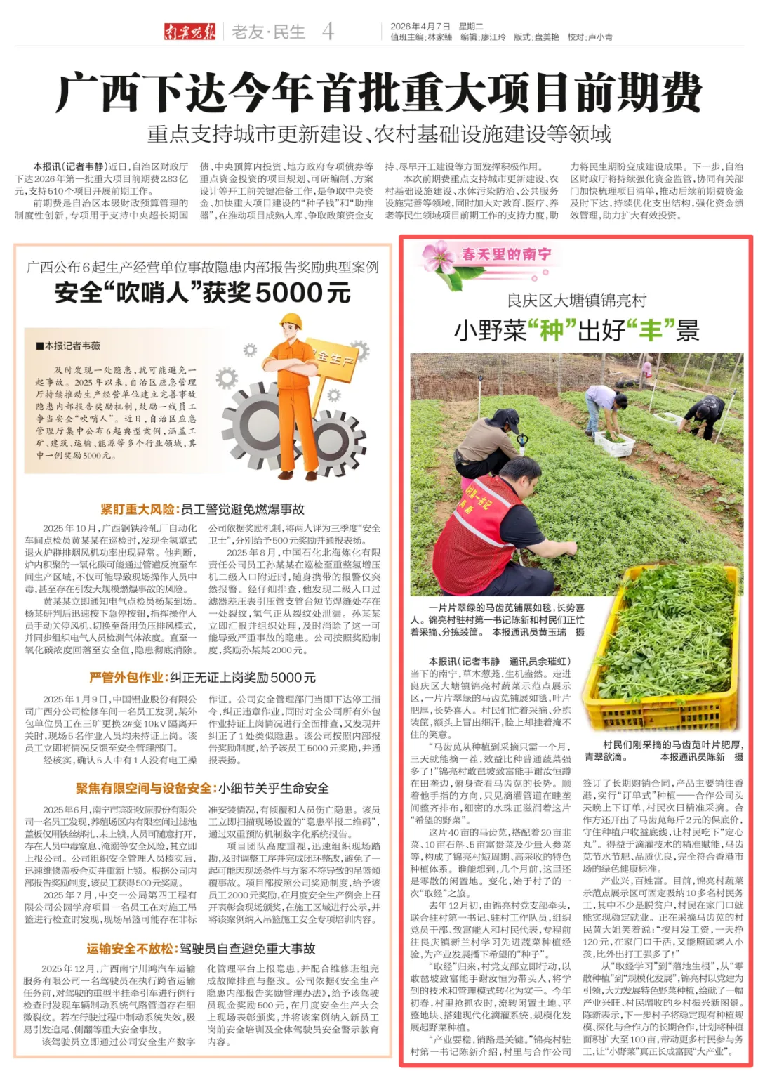 当下的南宁,草木葱茏,生机盎然。走进良庆区大塘镇锦亮村蔬菜示范点展示区,一片片翠绿的马齿苋铺展如毯,叶片肥厚,长势喜人。村民们忙着采摘、分拣装筐,额头上冒出细汗,脸上却挂着掩不住的笑意。
