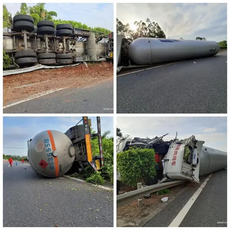7月11日凌晨,兰海高速位于我市良庆区大塘镇路段钦州往南宁方向发生一起液化石油气槽罐车追尾事故,导致槽罐车倾倒侧翻在高速路中央隔离带,事故造成一名驾驶人员受伤,现场情况危急。南宁市应急管理局应急指挥中心接到事故报警后,迅速协调医疗救护和专业救援队伍赶赴事故现场对伤员进行救治,同时对现场进行查勘处置。南宁市危险化学品应急救援中队(后称危化中队)接警后立即出发赶赴现场,迅速与消防、交警、路政等部门和乡镇政府组成救援小组,对周围道路进行警戒,组织人员撤离疏散,检查罐体未发现液化石油气泄漏,同时严控火源,防止静电,预防二次事故发生,做好事故现场先期处置。救援小组经仔细查勘和研究,做好罐体泄露的措施准备后,决定调集三台大吨位吊车对重达50吨的事故槽罐车进行扶正后转移。处置程序分三步开展,危化中队技术组首先对罐体阀门、管路、套绳等情况和现场浓度、温度环境情况等进行细致的检查核查,再由消防部门使用雾状水对罐体进行喷淋湿化和降温,按照危化品救援处置要求用棉被包裹吊装钢丝绳,防止滑擦产生火花,最后在现场救援人员的密切配合下,将罐体扶正后换装挂车车头,拖拉至安全地带,等待转移至附近燃气站进行卸装倒罐处理。救援过程总共历时10多个小时,在确保周边居民及救援人员的人身安全的前提下,安全将侧翻石油气罐车移出事故现场并送达倒灌处理点,成功处置险情,以实际行动切实保障群众生产财产安全和社会和谐稳定。现场照片