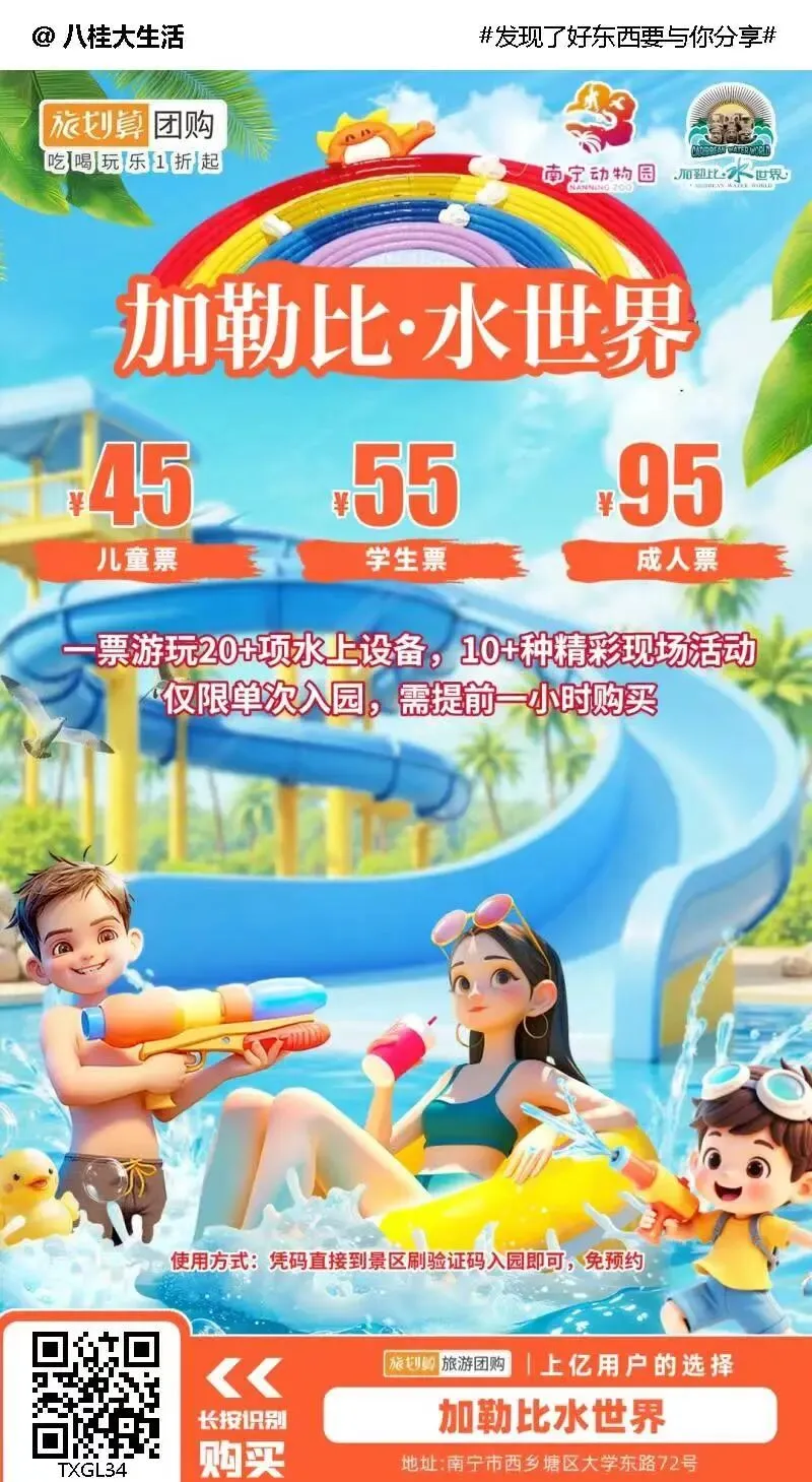 南宁 | 加勒比水世界:一票畅玩20+项水上项目,10+种互动游戏!