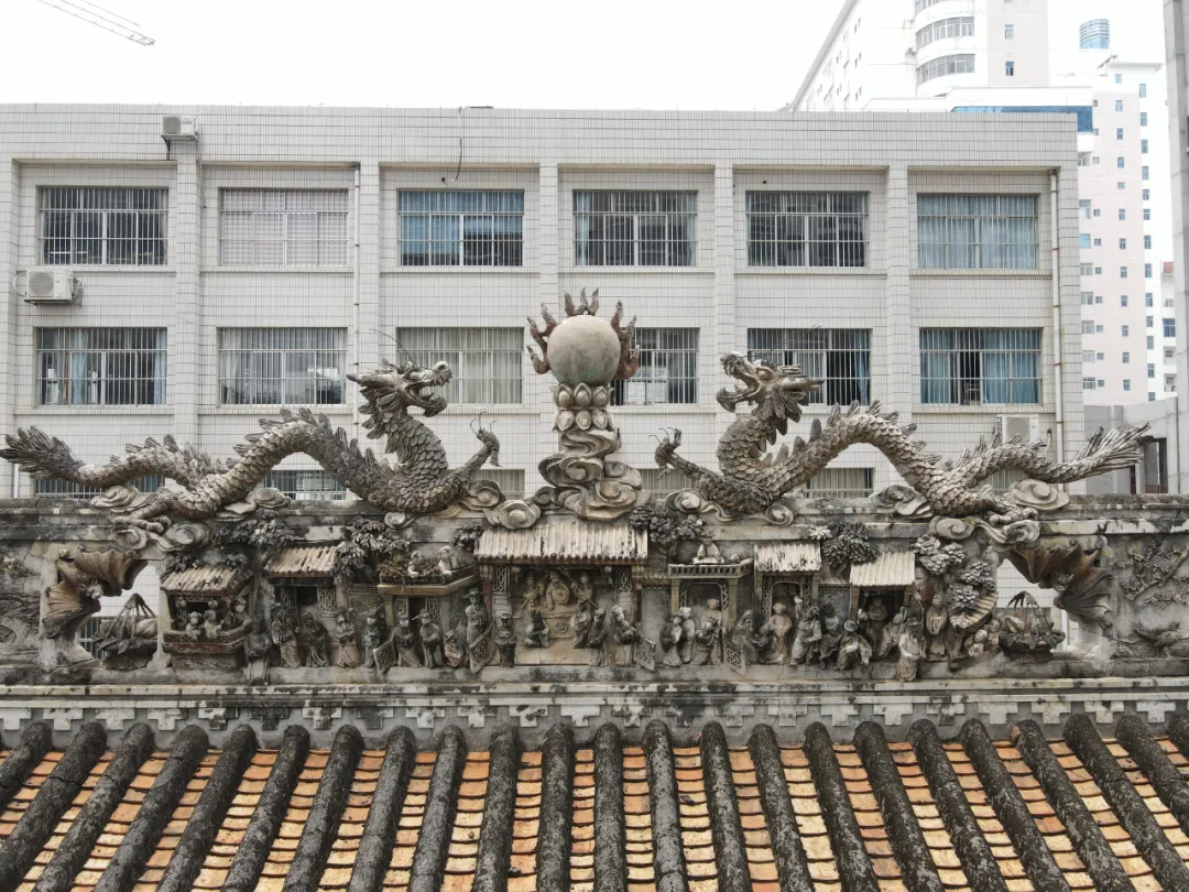 它运用灰塑、浮雕、彩绘手法讲述粤剧故事《六国大封相》,共塑有40个人物,造型生动、夸张。