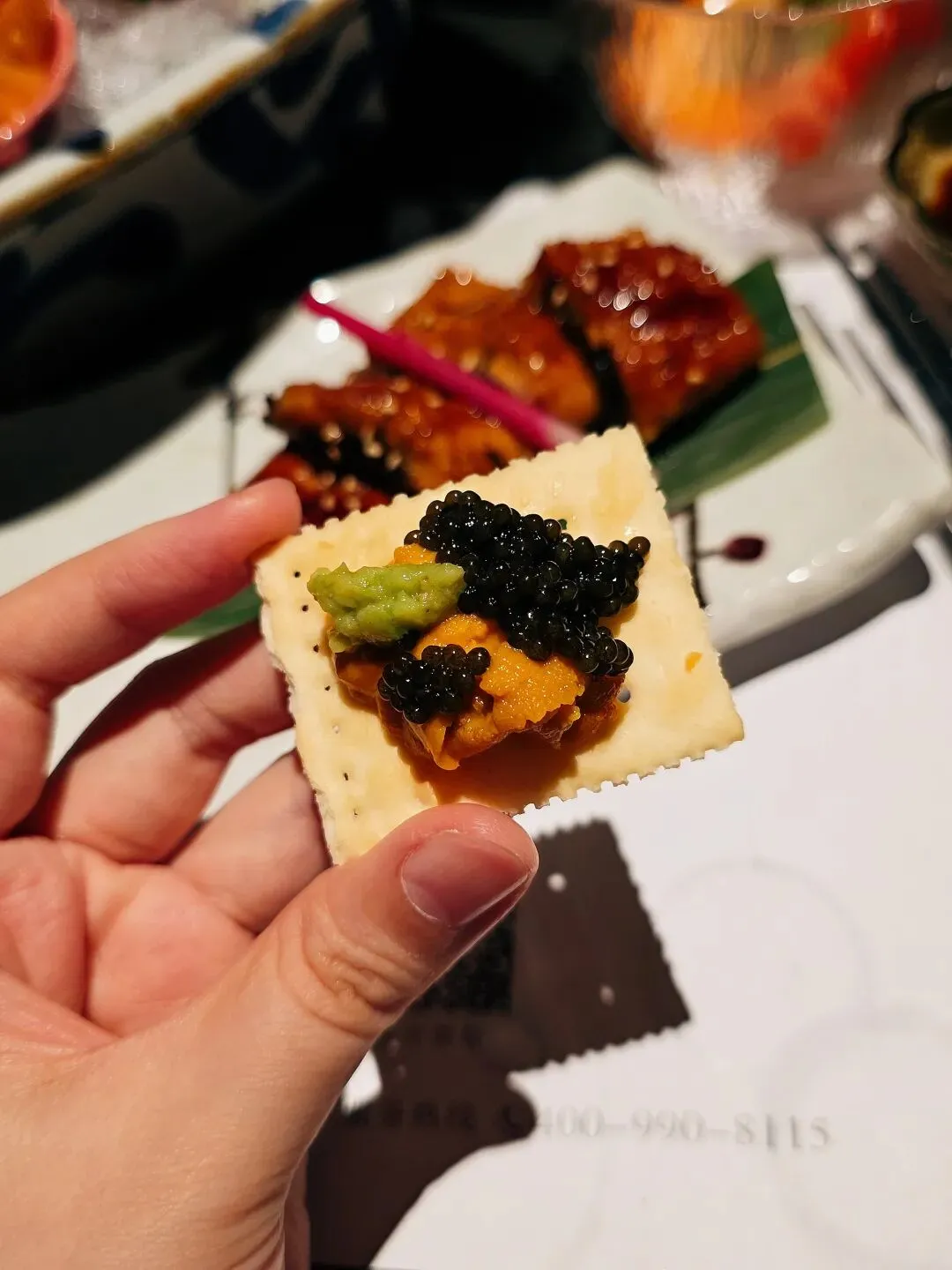 刺身拼盘、鱼子酱的精致摆盘、还有自己举着“海胆鱼子酱饼干”的特写,发朋友圈被问爆“这是哪家神仙店”!