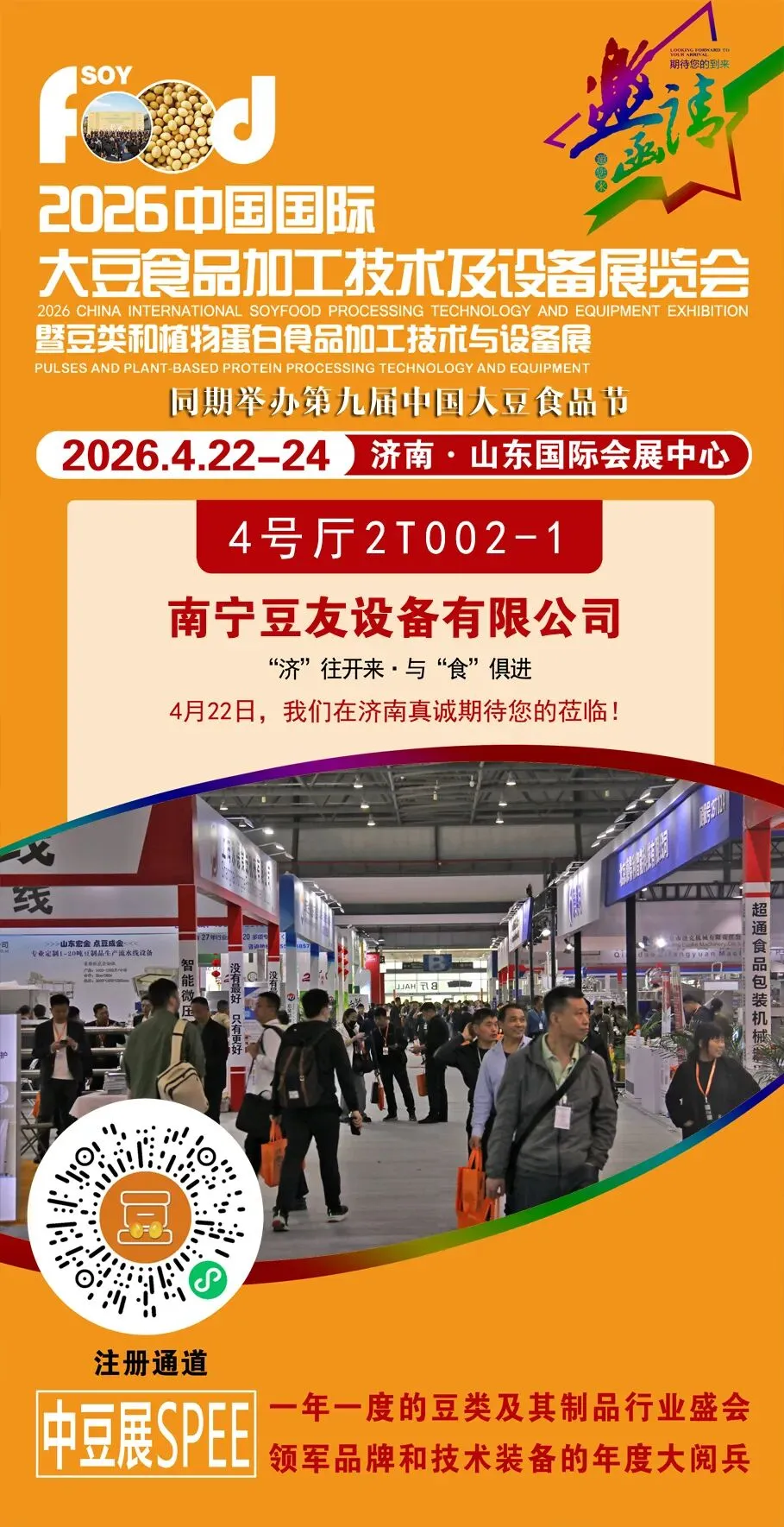 “济”往开来,与“食”俱进。2026年4月22日,中豆展SPEE将继续创新与突破,我们诚邀您共同见证此次行业年度盛会。共论新机遇,共赢新未来!