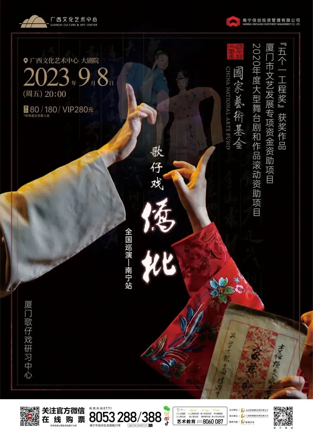 9月8日 20:00 | 歌仔戏《侨批》 | 80/180/280元 | |