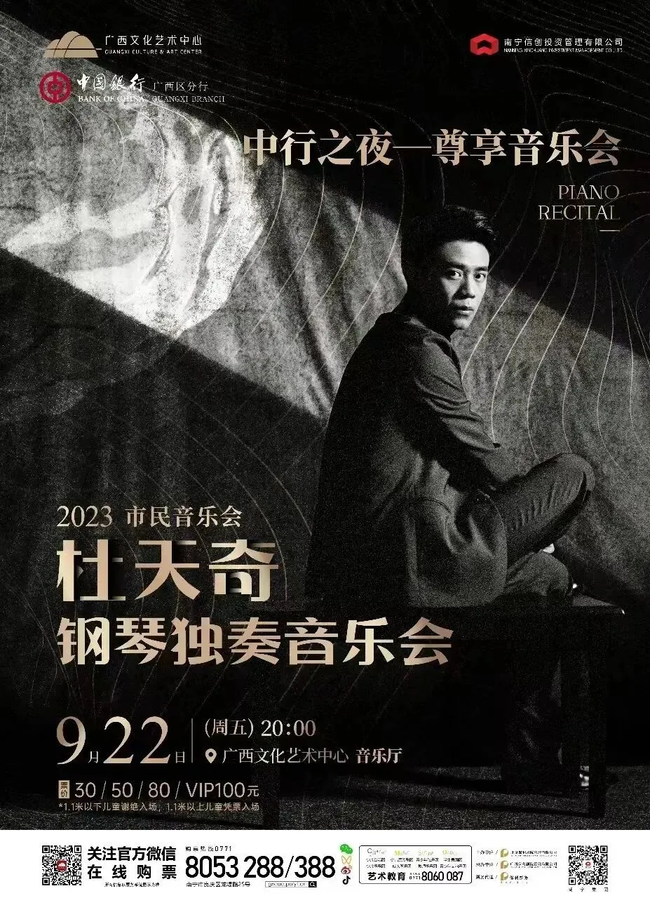 9月22日 20:00 | 《杜天齐钢琴独奏音乐会》 | 30/50/80/100元 | |