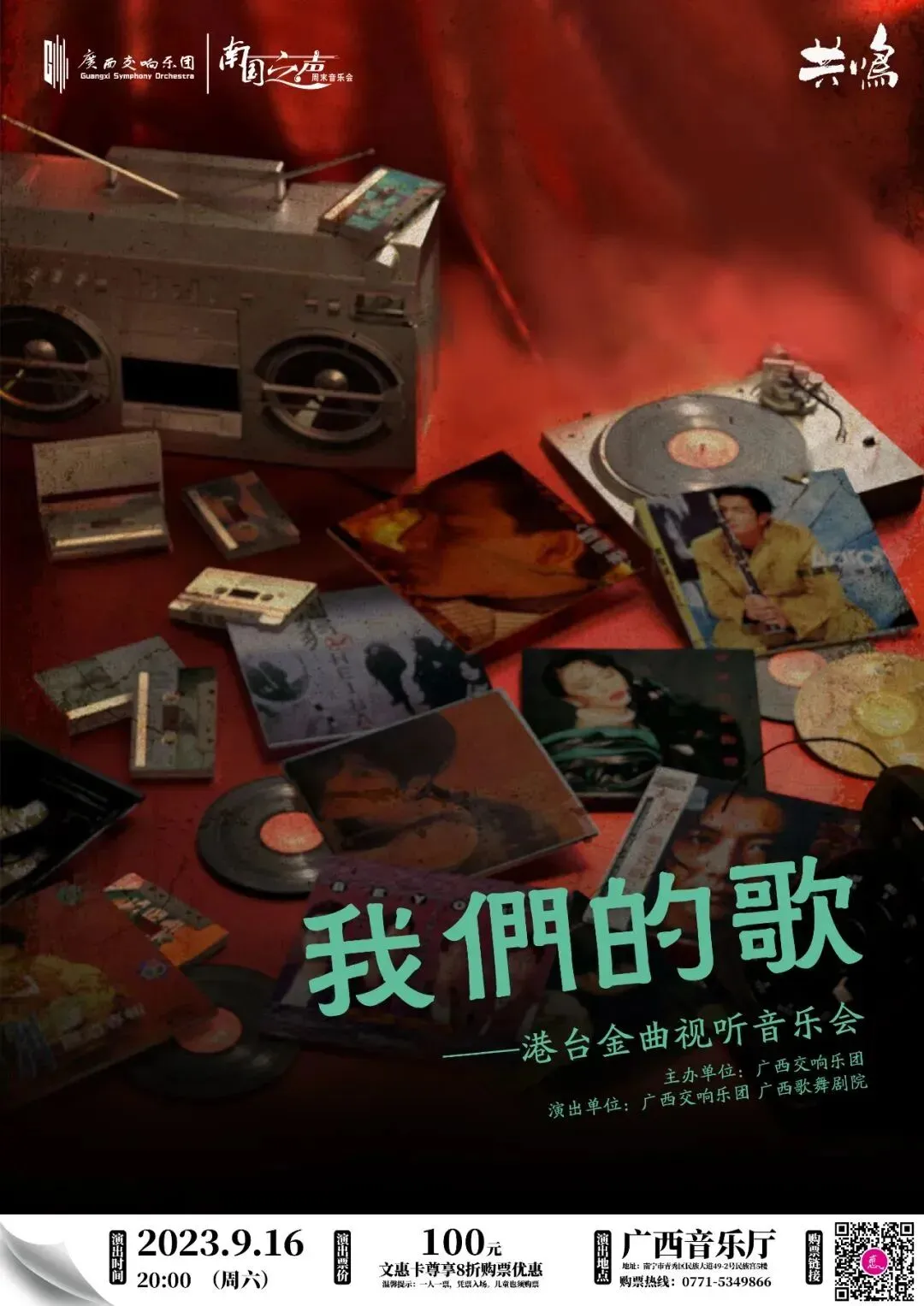 9月15—16日 | “我们的歌”港台金曲视听 音乐会 | 100元(文惠卡8折) | 广西文化惠/广西音乐厅南国之声微信公众号/猫眼/大麦 |