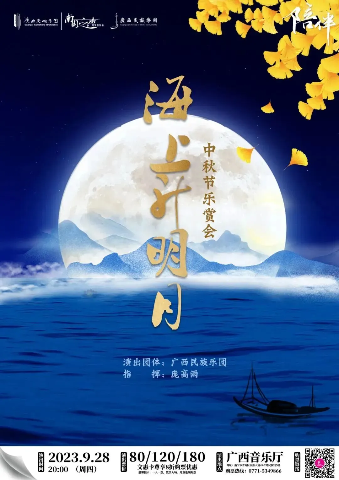 9月28日 | 陪伴——“海上升明月”中秋节乐赏会 | 80/120/180元 (文惠卡8折) | 广西文化惠/广西音乐厅南国之声微信公众号/广西文化艺术中心公众号/猫眼/大麦 |