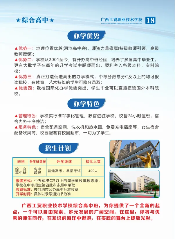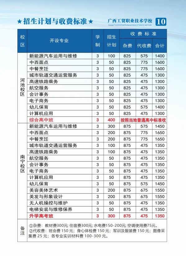 3. 额外费用:综合高中班需缴纳高中文化课程及培训考证费,每学期1600元。