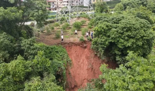 3.坡体持续滑塌会导致塔基周边保护土体不断流失,最终威胁塔基稳定,可能引发杆塔倾斜、倒塌,造成500kV输电线路中断,带动前后档塔基连锁风险,同时影响周边高速、乡村道路通行安全。