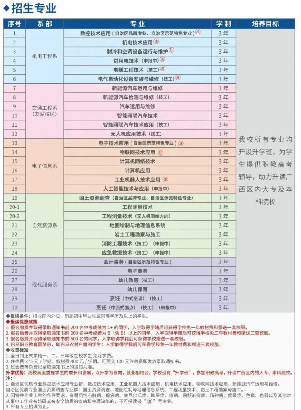4.巴马职业教育圆梦班,即巴马农村户籍的学生:入学取得学籍后可获得学校免一年教材费和赠送三套校服。