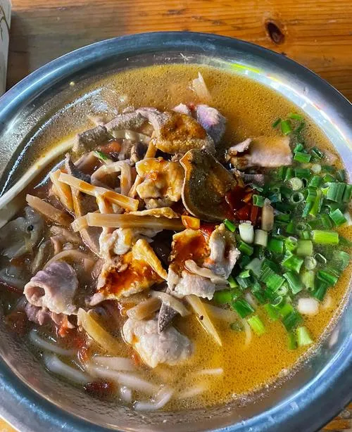 我后来才知道,这碗粉的灵魂在于那个汤底,不是简单煮出来的,是要用酸笋、豆豉、蒜末、辣椒这些东西一起爆香,那个香味能飘出去好远,你走在街上闻到了就会自动转弯进店,说实话我当时就是被这个味道拽进去的,然后汤底还要加骨汤熬,熬到酸味和鲜味完全融在一起,这个过程急不得,老板跟我说至少要两个小时,所以你在南宁看到那些真正做老友粉的店,都是一大早就开始准备了。