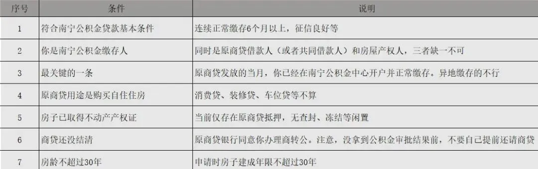 不能“挑着转”:只能申请将全部商业贷款余额转为纯公积金贷款,不能只转一部分,也不能转为“公积金+商业”的组合贷。