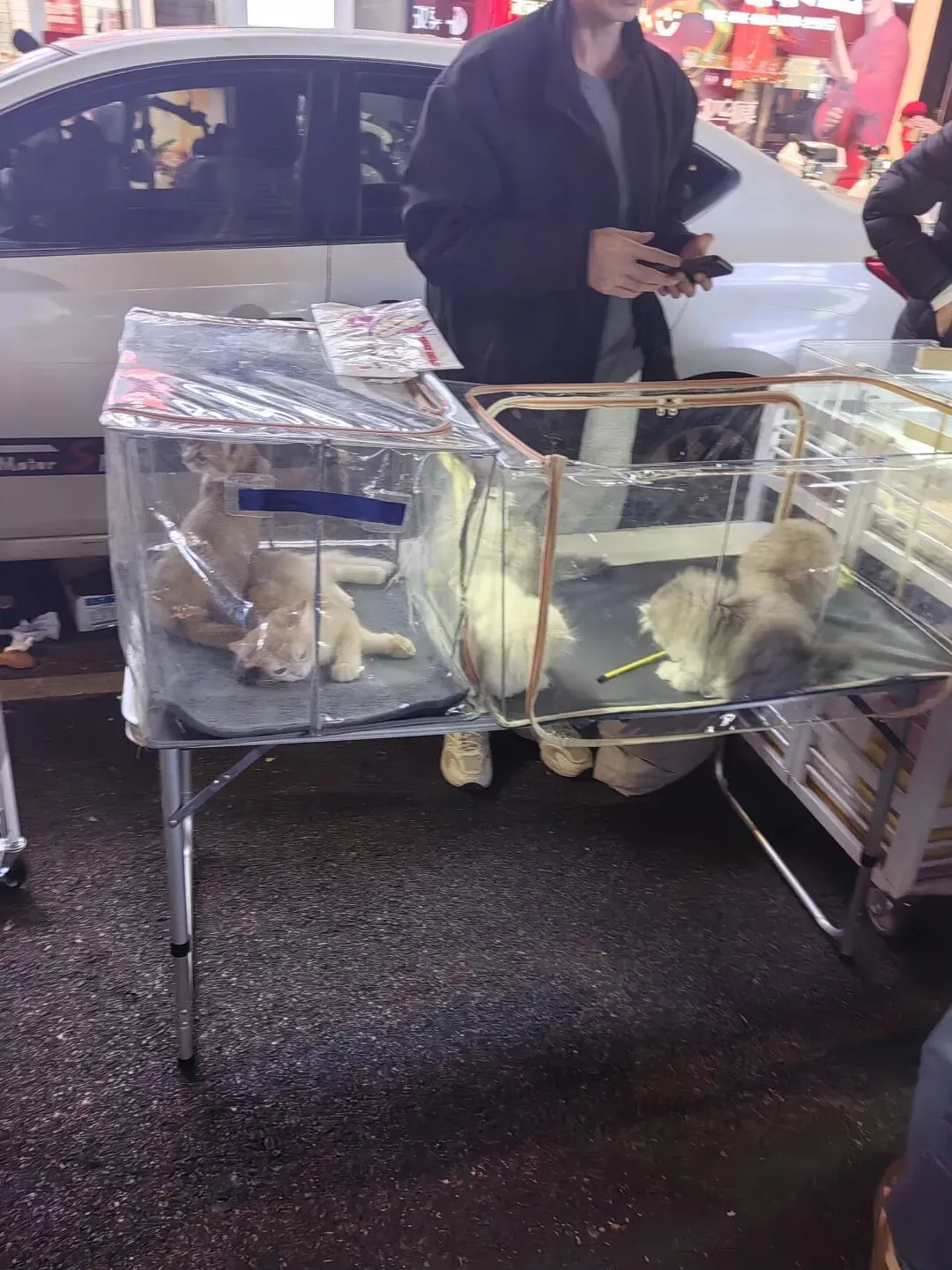 说起宠物交易,大多数人的第一反应就是去到专门的宠物市场或者是花鸟交易市场去购买!然而,在南宁的市中心,靠近步行街最繁华的地段,有这么一条路,每到夜晚这里就变成了一个热闹非凡的临时的宠物市场!说是宠物市场,其实就是大家在每天晚上自发的带着自己的宠物来这里摆摊售卖而形成的一个临时夜市街!有的摊主直接把小狗放到笼子上面售卖,这样可以让顾客能够看得更清楚一些!除了小狗之外,其他的小动物,例如:猫咪,兔子,甚至是宠物鼠这里都是统统都有售卖!从现场来看,这么一个人为的约定俗成的临时宠物市场,似乎还是非常受年轻男女欢迎的,看到很多人在观看,询价或者是进行购买!各位小伙伴们,对于这样一个临时的宠物市场,大家觉得如何呢?欢迎在评论区留下您的观点哦!!