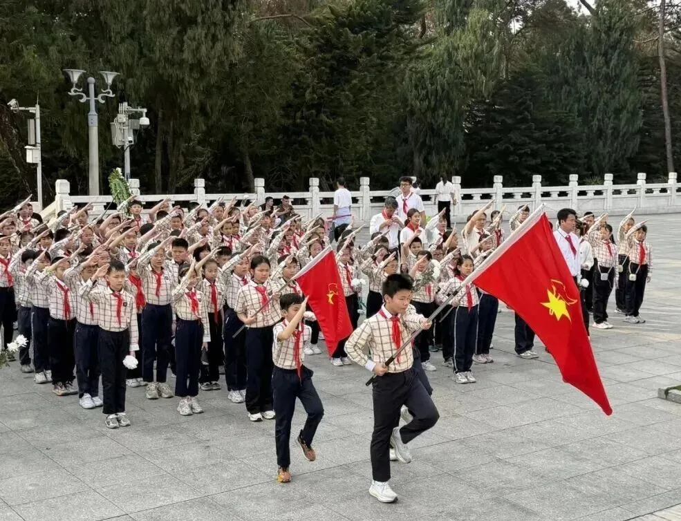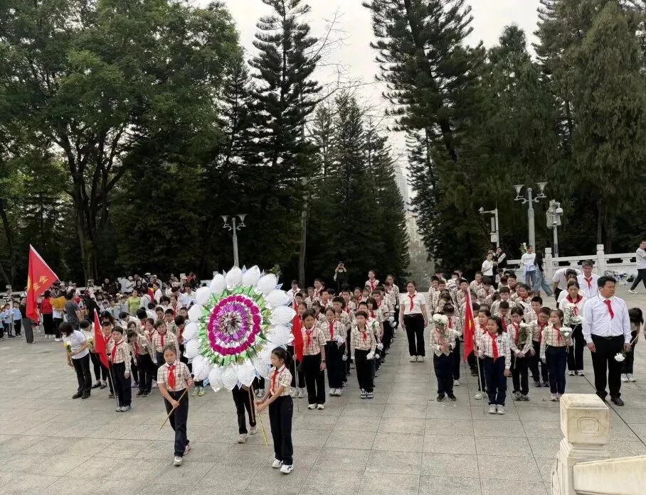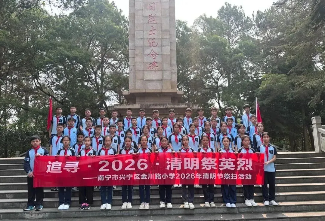 清明寄哀思,薪火永相传。近日,南宁市少工委紧扣“追寻·2026·清明祭英烈”主题活动,动员全市各级少先队组织,以“仪式+实践”结合的方式缅怀先烈、致敬英雄,让英烈精神在新时代少年儿童心中扎根传承、 赓续弘扬 。南宁市云景路小学组织少先队员代表,前往南宁市人民公园革命烈士纪念碑,开展“红领巾向英烈致敬”清明祭扫实践活动。少先队员代表向革命烈士纪念碑敬献花篮,并献上洁白小花,寄托深切哀思。 活动邀请老兵现场宣讲英烈事迹,让队员们深刻感悟革命精神。全体少先队员高举右拳,重温入队誓词,铿锵誓言彰显传承红色基因、勇担使命的决心。 松柏凝翠寄哀思,薪火相传祭英魂。为深切缅怀革命先烈的丰功伟绩,传承红色基因,厚植全校党员、团员、队员爱国情怀,南宁市滨湖路小学教育集团五校区于清明节前夕,组织开展了形式多样的“清明祭英烈”活动,引导全体人员铭记历史、致敬英雄、勇担使命。(南宁市滨湖路小学滨湖校区党、团员教师代表、少先队员代表,前往近日,大丰镇中心学校少先队大队组织少先队员开展“清明追思 缅怀先烈”主题队日系列活动。各中队召开主题队会,通过PPT宣讲、分享英烈事迹等形式,回顾峥嵘岁月,感悟英烈精神。随后,党员教师与少先队员代表列队前往烈士纪念碑前,举行庄重的祭扫仪式。仪式最后,全体少先队员面向队旗庄严宣誓,立志继承先烈遗志,传承红色精神,争做担当民族复兴大任的新时代好队员。 (全体少先队员列队前往烈士纪念碑前,举行庄重的祭扫仪式 ) 2026年4月3日,明亮镇中心校明澄校区组织少先队员在烈士墓前祭扫。通过默哀、敬献花圈、重温入队誓词,铭记历史,继承先烈遗志,让红色基因代代相传。( 明亮镇中心校明澄校区少先队员代表在烈士墓前举行祭扫仪式 )又是一年清明时,春风落日寄哀思。为缅怀革命先烈,传承英烈精神,厚植家国情怀,3月31日,南宁市兴宁区金川路小学开展以“追寻•2026•清明祭英烈”为主题的清明节祭扫活动。在庄严的革命烈士纪念碑前,队员们齐声献唱国歌、队歌,敬献小白花。学校少工委主任陆瑛在烈士纪念碑前讲述先烈英雄事迹,勉励少先队员们铭记历史、缅怀先烈,以先烈为榜样,努力成长为能够担当民族复兴大任的时代新人。(南宁市兴宁区金川路小学全体人员整齐肃立,依次举行祭扫仪式) 又是一年清明至,缅怀英烈寄哀思。2026年3月26日上午,为引导队员们重温革命历史,弘扬先烈精神,厚植爱国主义情怀,赓续红色血脉,南宁市朝阳路小学联合兴宁区朝阳街道朝阳社区前往南宁市人民公园人民英雄纪念碑开展清明节祭扫活动,以庄重的仪式缅怀革命先烈,让红色种子在孩子们心中生根发芽,让红色基因代代相传!(南宁市朝阳路小学少先队员们在纪念碑前举行出旗仪式)( 兴宁区朝阳街道朝阳社区党员、 南宁市朝阳路小学队员 向革命先烈献花 ) 南宁市百灵路初级中学组织团员、队员到南宁市人民公园开展“追寻·2026·清明祭英烈”团、队日实践活动。党员教师、团员、少先队员代表在发言中号召大家以英烈为榜样,厚植爱国情怀、勇担时代使命,将红色基因融入血脉、代代相传;参观毛主席接见广西各族人民纪念馆、近现代国防历史文化陈列馆(镇宁炮台),还开展思想主题交流会。此次活动激励青少年立志以青春之力传承英烈精神,勇担时代使命。(南宁市百灵路初级中学队员代表参观毛主席接见广西各族人民纪念馆) 南宁市天桃实验学校嘉和城校区组织党员教师、队员代表代表前往南湖公园李明瑞、韦拔群等革命烈士纪念馆,开展“缅怀革命先烈 争做时代先锋”清明祭扫主题思政课。活动中,全体人员向纪念碑敬献花圈、默哀缅怀,重温革命先辈英雄事迹;队员代表进行演讲朗诵,少先队员重温入队誓词。(南宁市天桃实验学校嘉和城校区、党员代表、队员代表在李明瑞、韦拔群等革命烈士纪念馆内,重温革命先辈英雄事迹)一 审 | 陈嘉璐