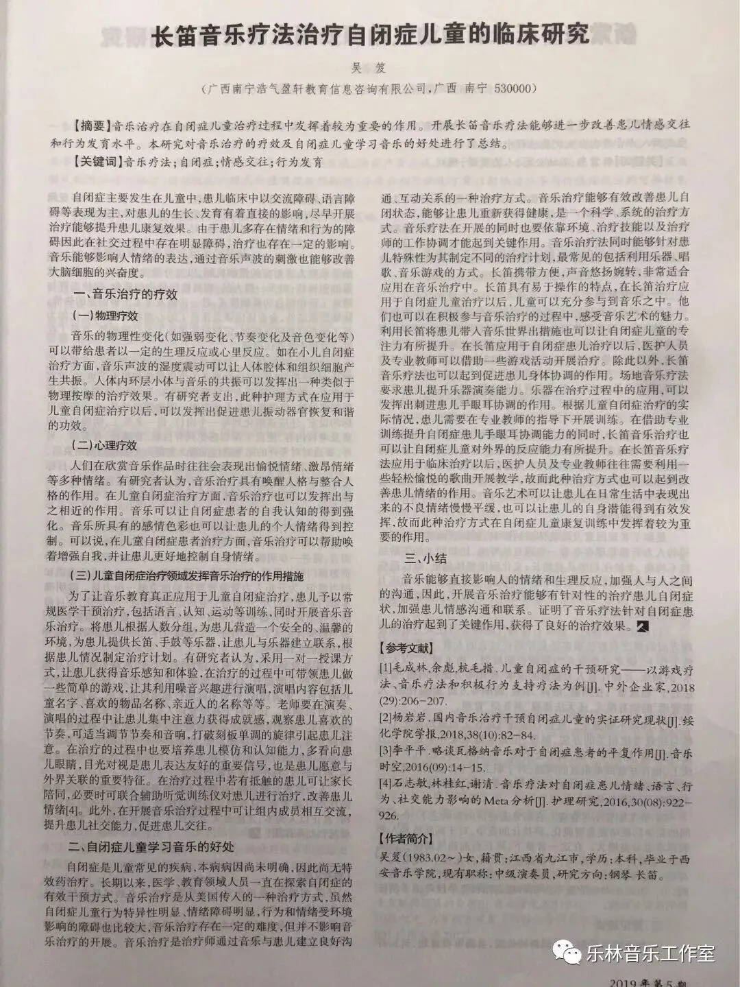 音乐愈疗作为一门独立的学科,20世纪中期在美国建立。延伸至今音乐愈疗属于当代社会应用性较强的心理治疗。通过对音乐学、教育学、心理学多方面的理论与实践结合为一体,对人体机能作用,按照系统的愈疗手段,应用在音乐相关体感活动中。据了解,大部分的特殊儿童虽然拒绝语言,但不拒绝音乐,为此,吴笈老师以音乐愈疗,长期义务长笛教学于南宁市福建路小学培智班学生免费使用八支全新长笛,价值三万元!
