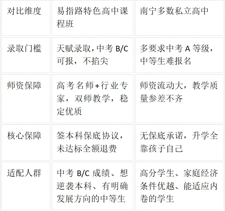 而在南宁所有私立高中/特色高中课程里,能真正适配中等生、实现“低进高出”、让家长零焦虑的,只有——易指路特色高中课程班!
