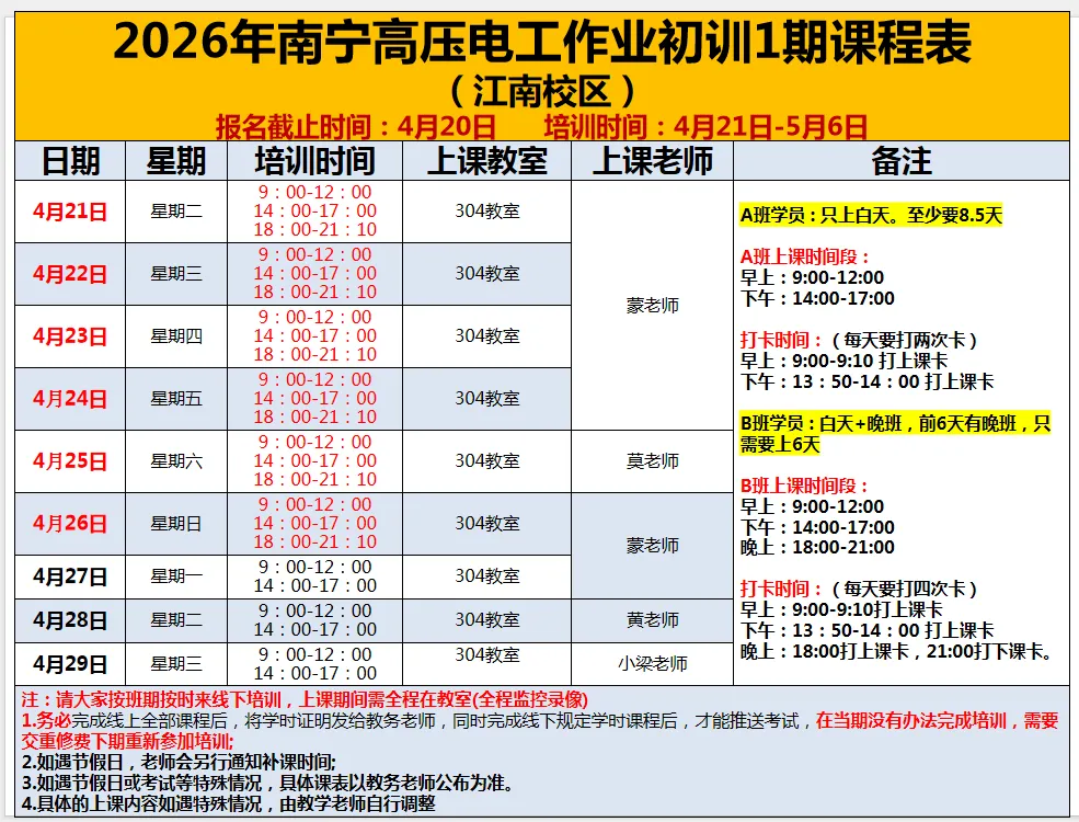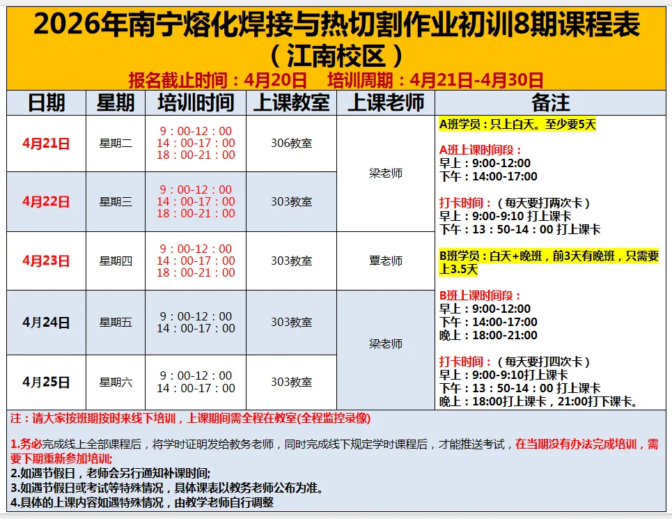 为贯彻落实《安全生产法》《特种作业人员安全技术培训考核管理规定》等法律法规要求,提高特种作业人员安全技术水平,防止和减少伤亡事故,促进安全生产,经研究决定,南宁拟开展2026年特种作业人员安全技术培训,现将有关事项通知如下:
