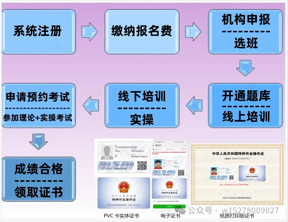 包括但不限于:低压电工作业、高压电工作业、高处安装维护拆除作业、熔化焊接与热切割作业、电气试验作业等采取“线上网课 + 线下面授”相结合的方式,线上学习理论知识,线下进行实操训练。报名时间:即日起至线下开班培训前一天