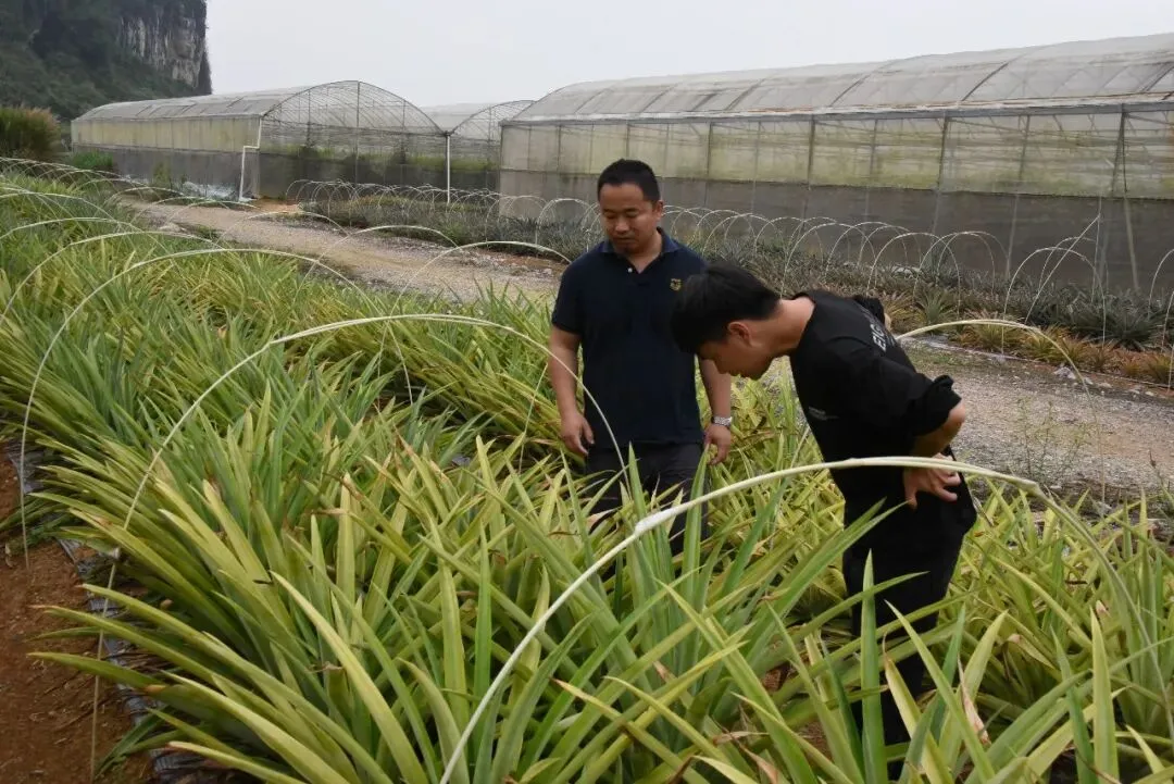 2026年4月7日,广西特色水果产业创新团队菠萝南宁综合试验站成员邓彪、梁茵龙赴崇左市扶绥县广西蓝天农业有限公司、广西农业工程职业技术学院开展菠萝春季生产技术指导工作。