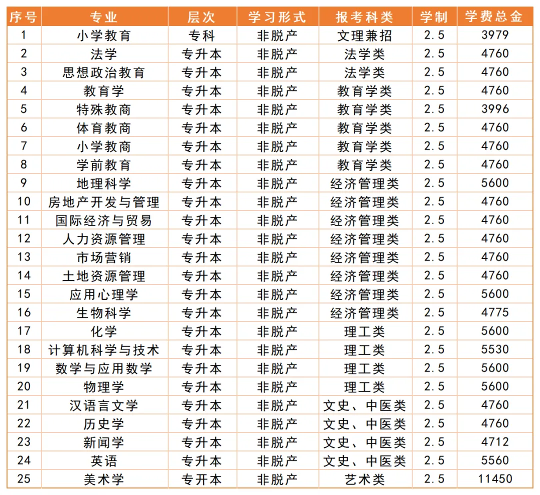 学校高等学历继续教育起始于1983年,是“全区成人高等教育评估优秀学校”,是全国成人高等学校招生统一考试(简称成人高考)考区。历经40年的发展,形成了多专业、多层次、多形式的成人高等学历继续教育体系,现设有1个高中起点升专科专业,24个专科起点升本科专业(本科专业均具有学十学位授予权)。依托学校优质的办学资源,建立起一支高水平的专、兼职师资队伍与管理团队,实行学分制和弹性学习年限,采取线上学习为主,线下学习为辅的混合教学模式,学员学习更加方便、灵活,学习体验更加丰富。