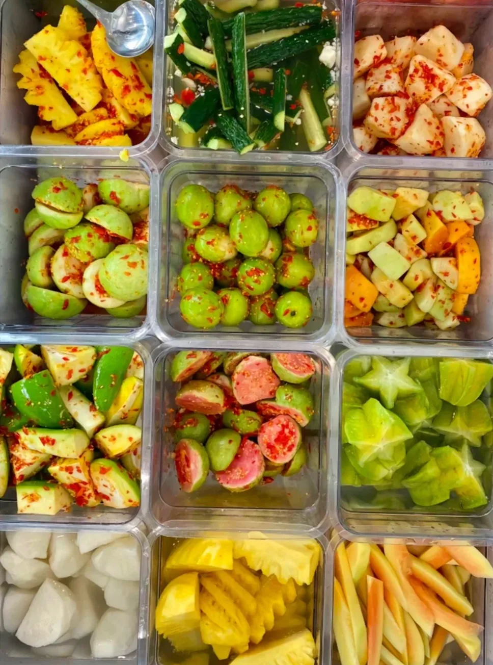 再拎一盒南宁酸嘢,芒果菠萝蘸上椒盐辣椒,