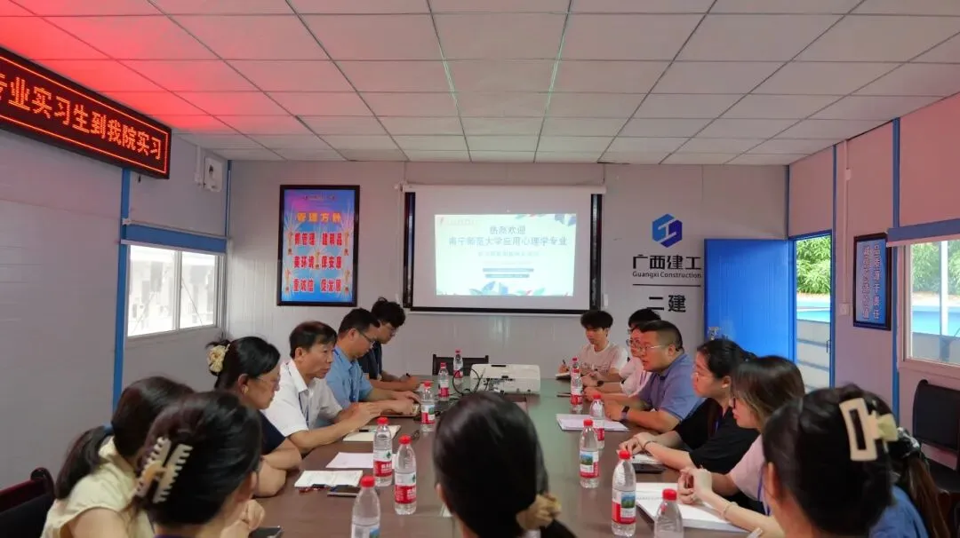 甘尊尊副科长介绍我院在学生管理的特色和围绕学生心理育人工作取得的成效。他期待南宁师范大学实习生的到来给学院心理健康工作带来新的活力。他鼓励实习生们能够深入学生当中,以专业视角服务学生成长,圆满完成本次实习任务。