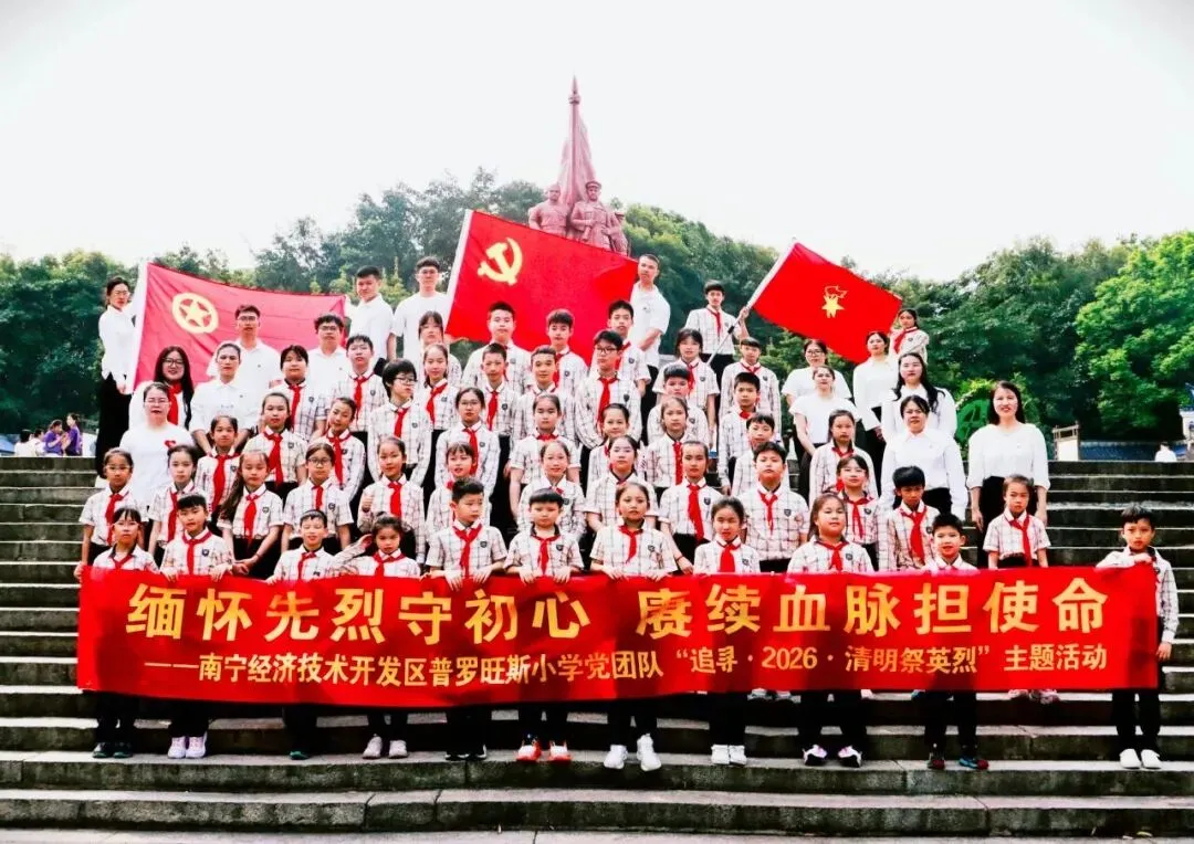 为缅怀革命先烈,弘扬爱国主义精神,引导广大少先队员铭记历史、传承红色基因,3月31日上午,南宁经济技术开发区普罗旺斯小学党员、团员、少先队员代表齐聚南湖公园李明瑞韦拔群烈士纪念碑,隆重开展党团队“追寻·2026·清明祭英烈”主题活动。