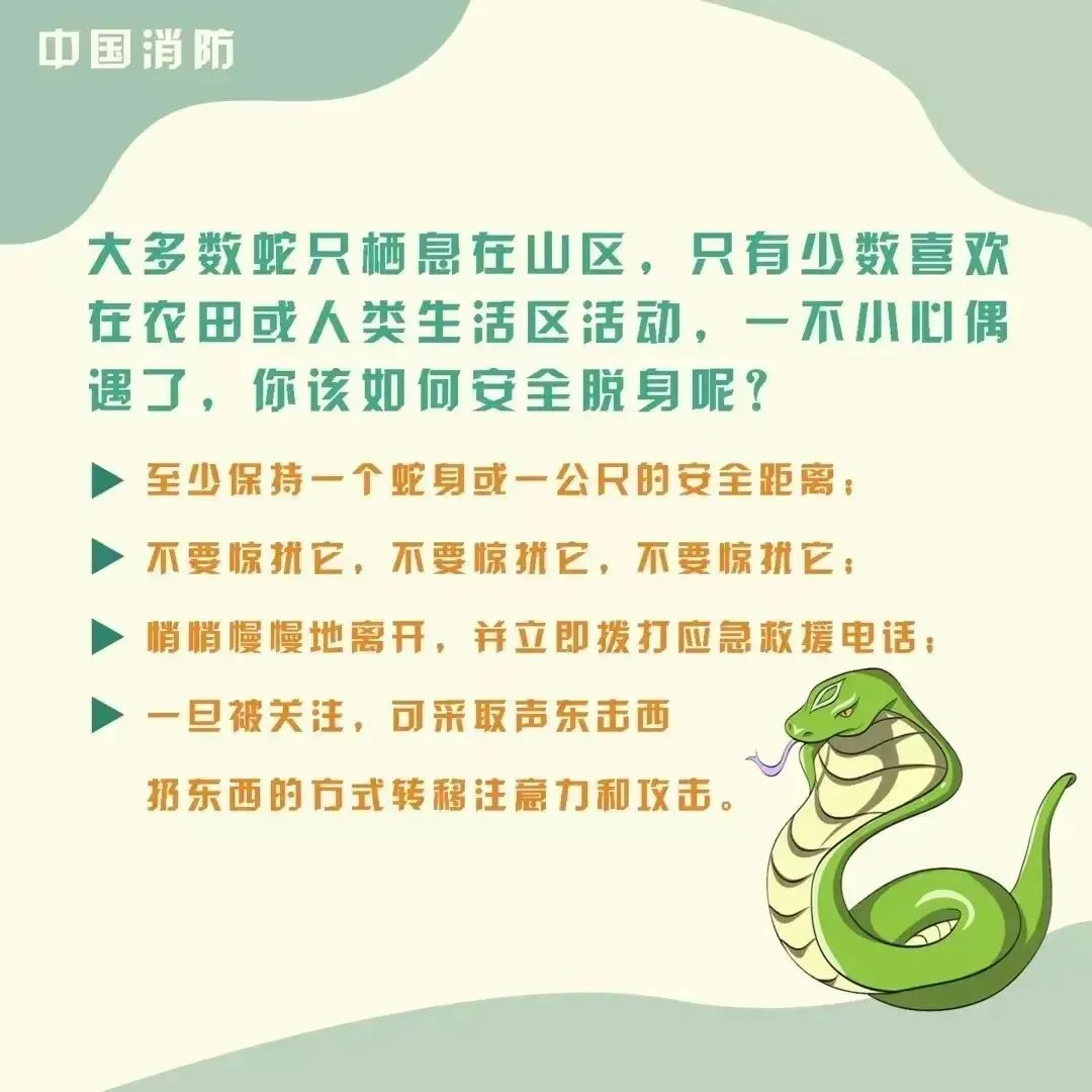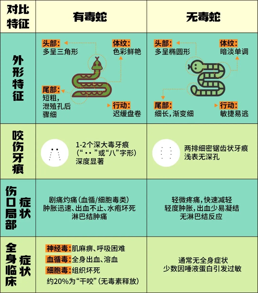 春夏季节是蛇类活动频繁期,一旦被蛇咬伤,务必记住蛇的特征,立即前往有抗蛇毒血清的医院就医。若出现眼睑下垂、吞咽困难、呼吸无力等症状,切勿误判为“昏迷”而延误或放弃治疗,这极有可能是神经毒中毒的症状,需争分夺秒使用抗蛇毒血清。