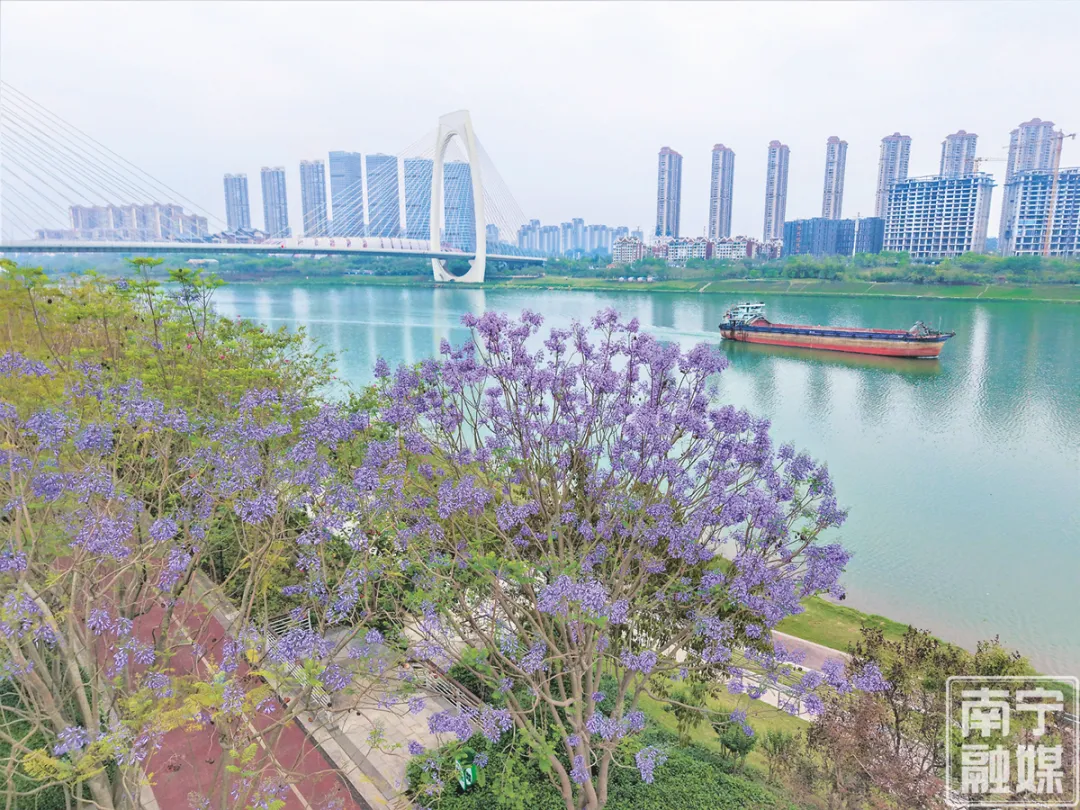 邕江畔,蓝花楹绚烂开放。记者 宋延康 摄