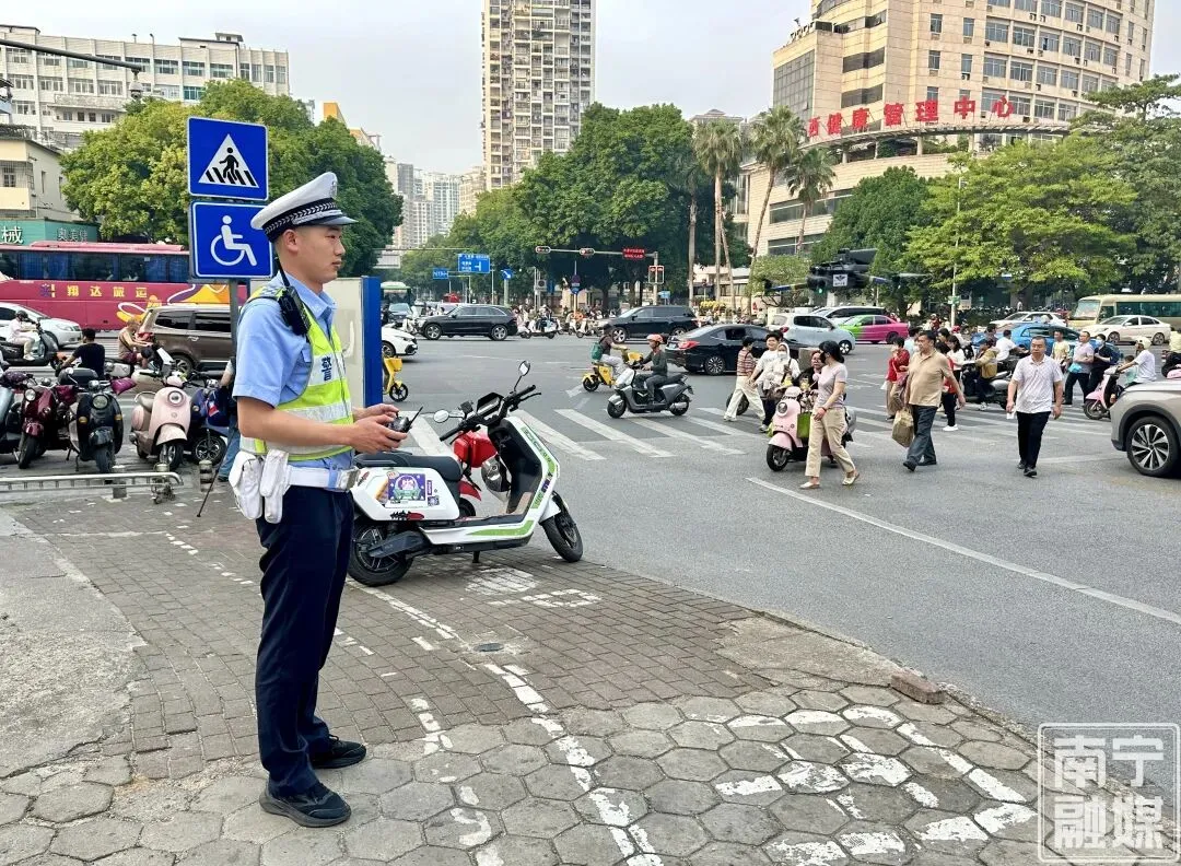 此外,南宁交警增派警力,实行定点值守与动态巡逻相结合的常态化管控。在医院门口、桃源桥匝道等关键点位部署警力,高峰时段全程驻点疏导;组织铁骑分队加密周边路段的巡逻频次,快速处置轻微事故、劝离违停车辆。