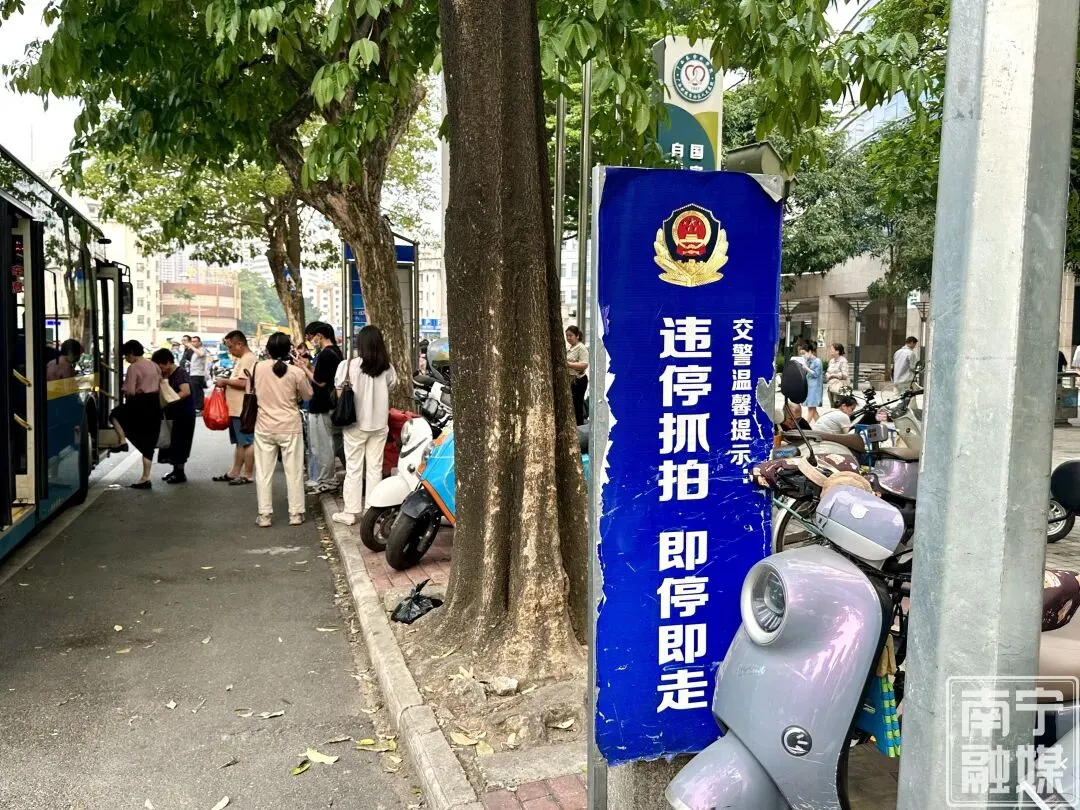 为净化医院周边的通行环境,南宁交警持续开展违停专项整治。对医院门前及周边巷道违规停放的共享电动车进行集中拖移清理,消除道路通行障碍;在医院入口处重新施划黄色禁停网格线,明确禁止任何车辆临时或长时间停放,保障出入口通行秩序。同时,同步优化交通设施,增设机非隔离护栏、停车指引标识和违停警示提示牌,从源头规范车辆停放秩序。