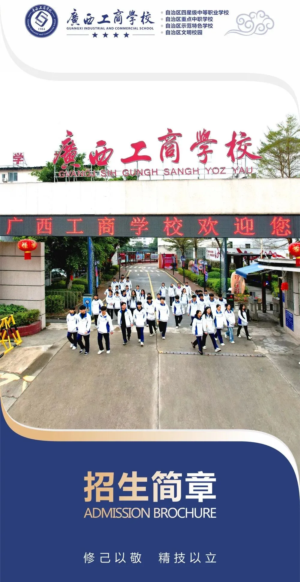 广西工商学校创办于1984年,是广西壮族自治区市场监管局主管的国有公办自治区四星级重点中等职业学校。作为自治区优质中等职业学校和专业B类立项建设单位,学校还荣获了自治区级示范特色学校、自治区文明校园、广西绿色学校、花园式单位、绿化先进单位、社会综合治理模范单位、文明庭院、卫生优秀学校等一系列荣誉称号。