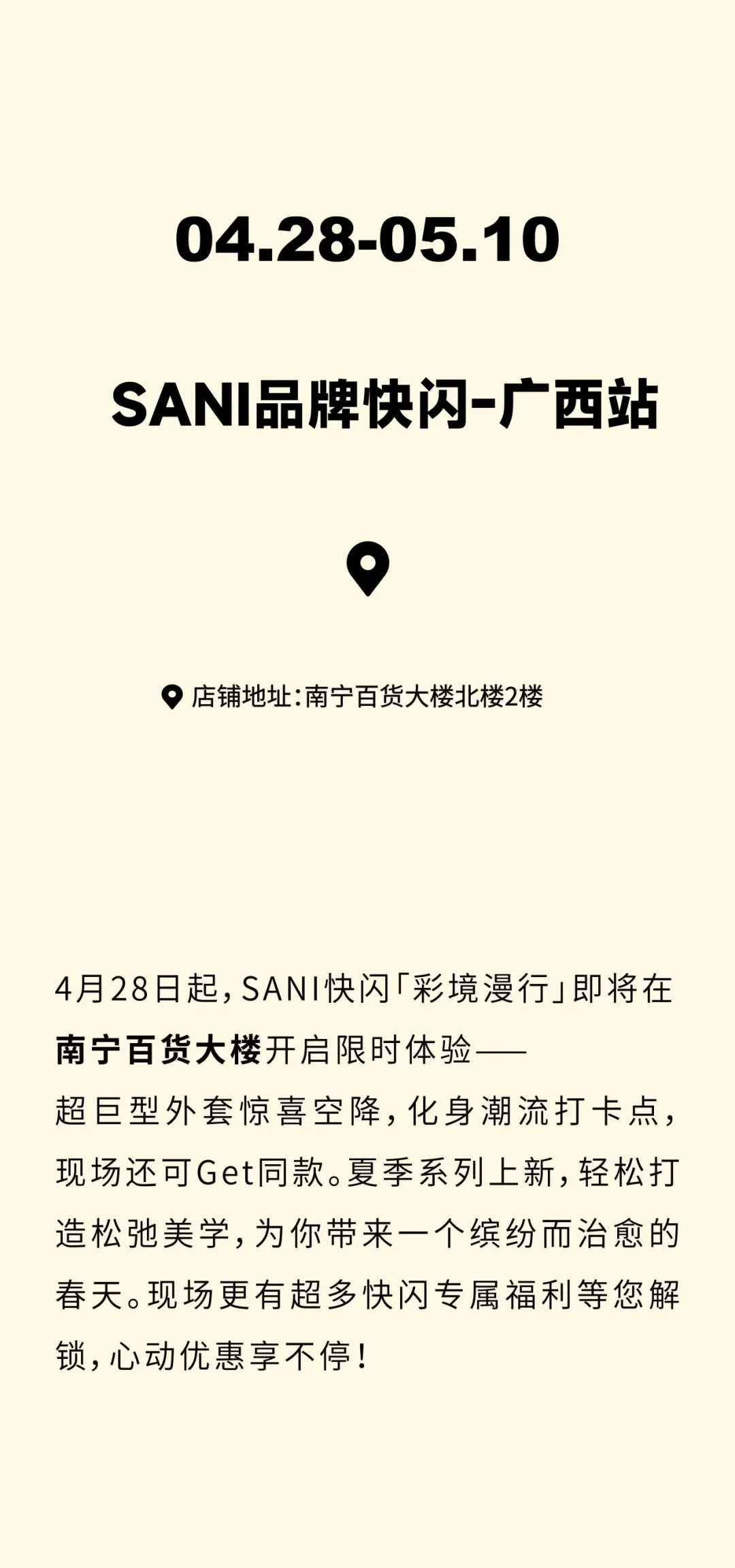 >彩境漫行 | SANI快闪亮相广西南宁百货大楼