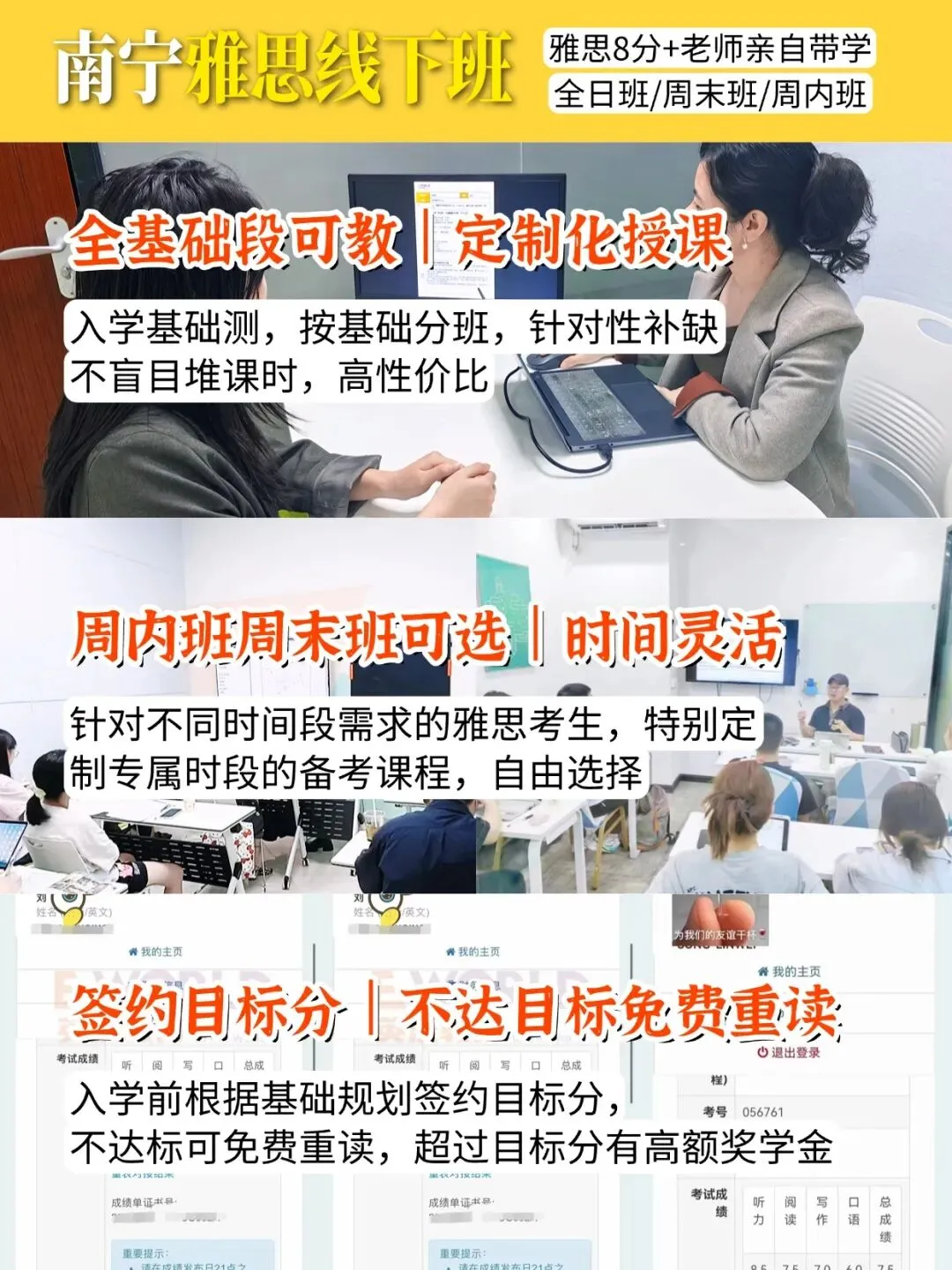 “无论你现在的起点在哪,目标分数是多少,南宁英沃雅思都能为你匹配最合适的提分路径。”