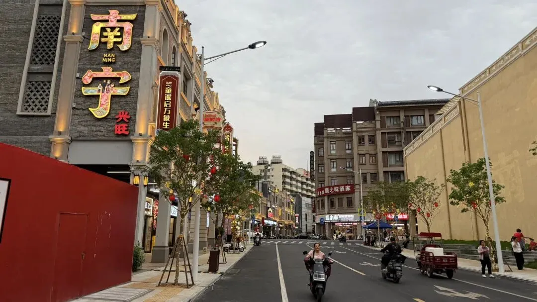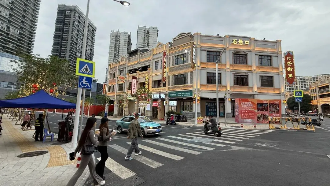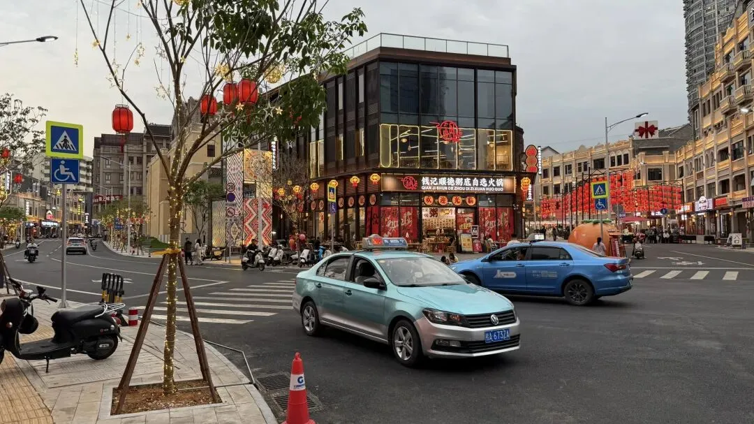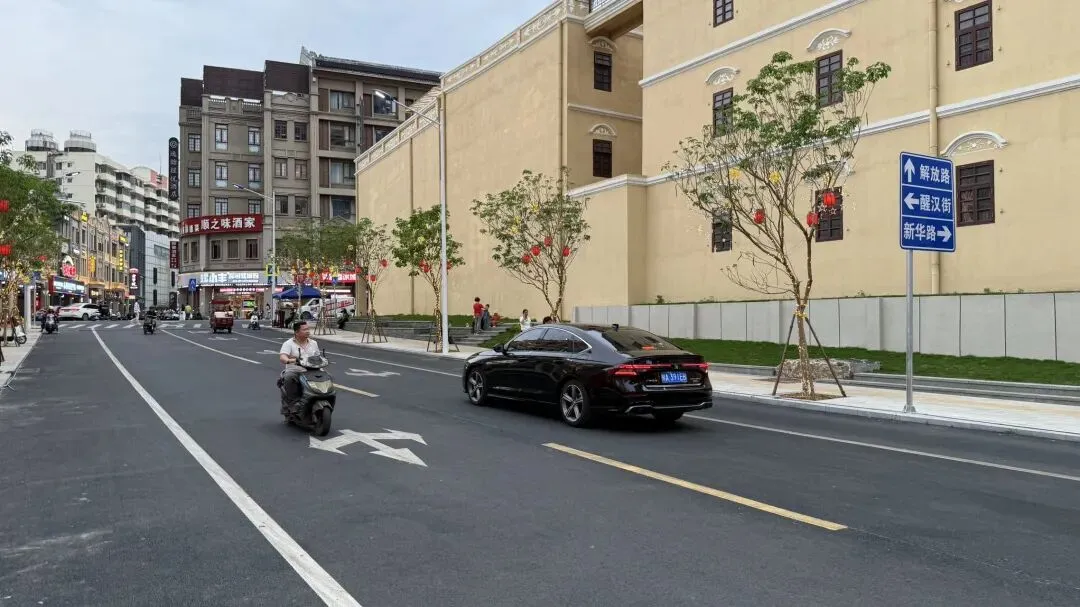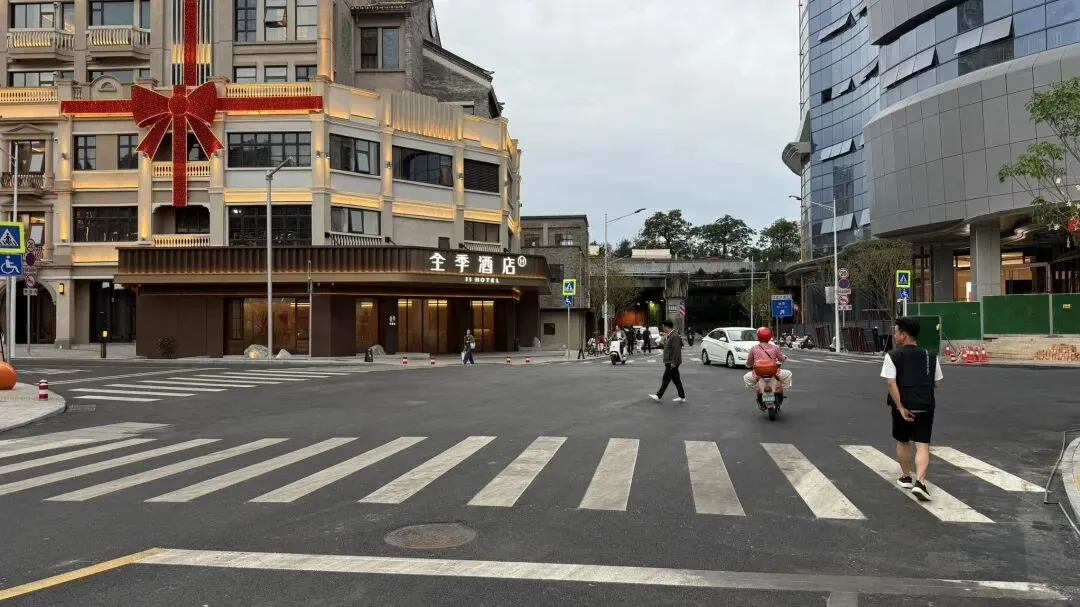 一开始我还以为这个道路是要做纯步行的街道,没想到它竟然开通车辆通行了。