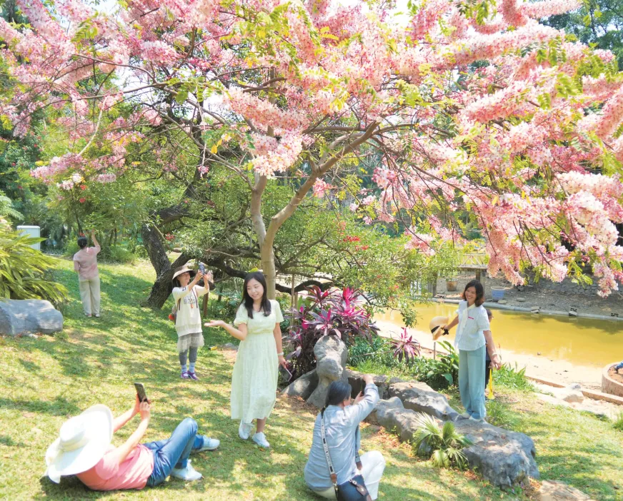 南宁市人民公园里的泰国樱花花开正艳。 记者 宋延康 摄