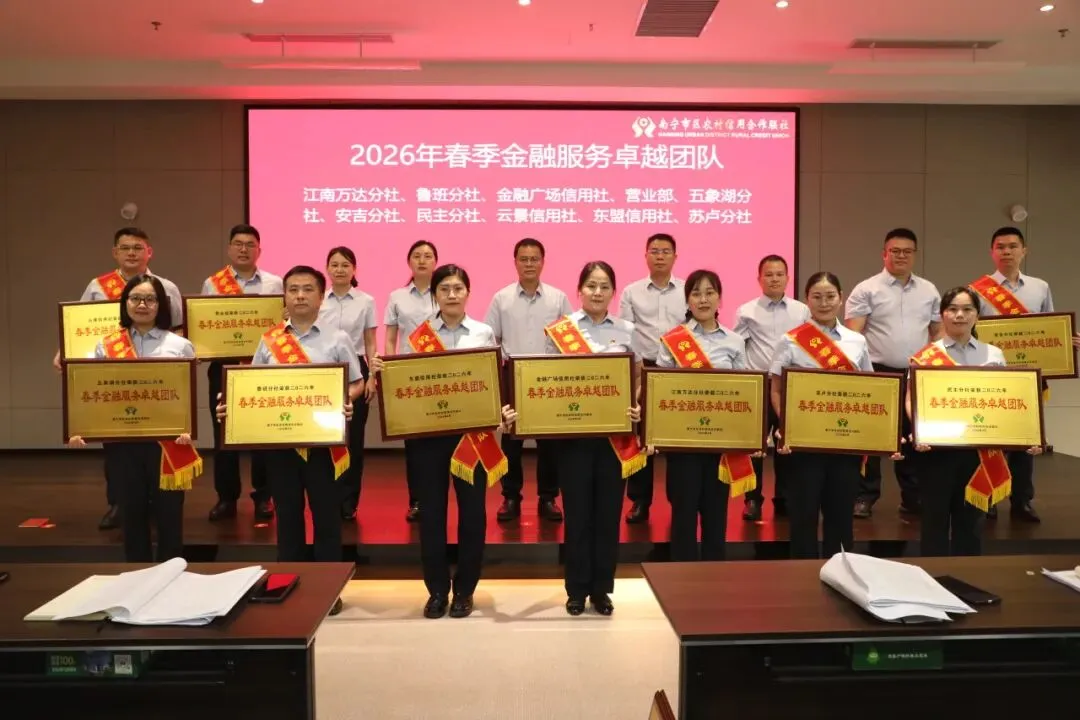 4月9日,南宁市区联社召开2026年一季度业务经营分析会暨2025年度先进集体、先进个人及2026年春季金融服务表彰大会。南宁市区联社领导班子,机关部室及各网点负责人等参加会议。
