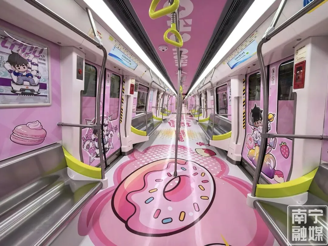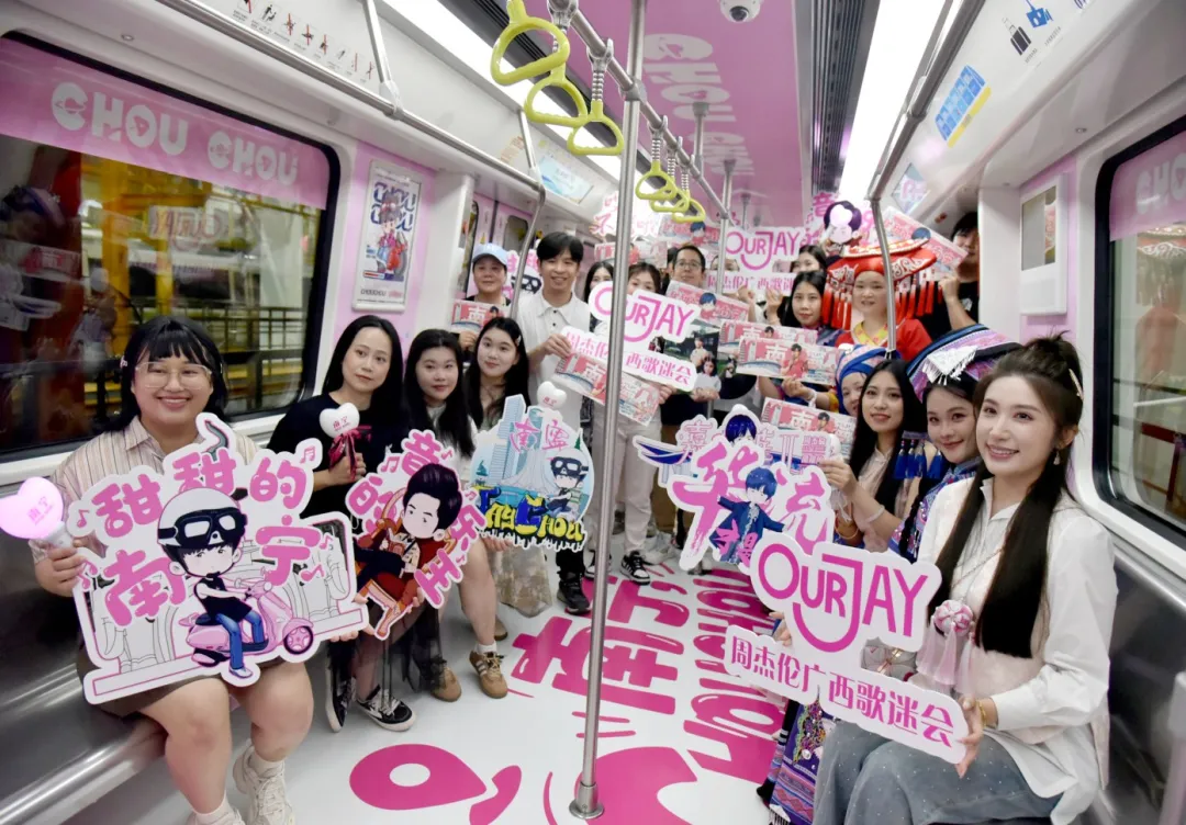 南宁地铁“甜甜的”主题列车吸引歌迷来打卡。