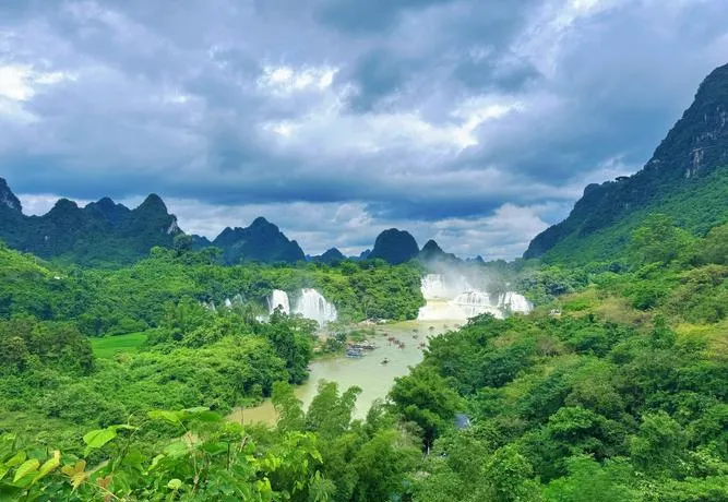 德天瀑布我本来以为就是个普通景点,但你站在那真的会愣住,不是因为多壮观,而是那种,怎么说呢,就是水声特别大,大到你说话对方都听不清,然后你就只能看着,看着看着突然就安静下来了,说实话我当时就觉得,哦原来瀑布是这么个存在,它不是让你拍照发朋友圈的,是让你站那发呆的。