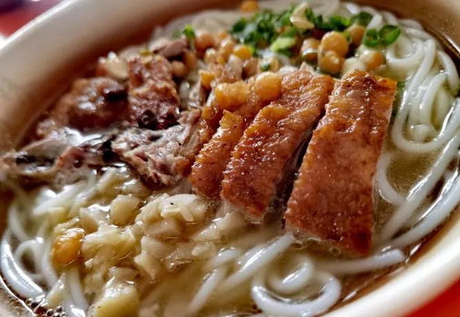崇左的吃的其实很接地气,不是那种网红店的感觉,就是本地人自己吃什么你跟着吃就行。那个鸡肉粉很有意思,怎么说呢,它的汤底是用整只鸡熬的,但不是那种很浓稠的,是清清的但很鲜,粉泡在里面,上面放几块鸡肉,看着简单但你吃一口就知道功夫都在汤里。