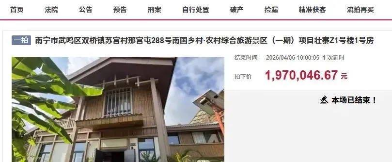 近日,在南宁市司法拍卖市场上,迎来了一宗位置非常特别的豪宅拍卖,一栋位于南宁市武鸣区双桥镇苏宫村那宫屯288号南国乡村·农村综合旅游景区(一期)项目壮寨Z1号楼1号房被拍卖。此次拍卖的是一栋豪宅别墅,别墅建筑面积为311.06平方米,带有大花园。整栋别墅为豪华装修。