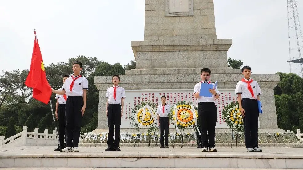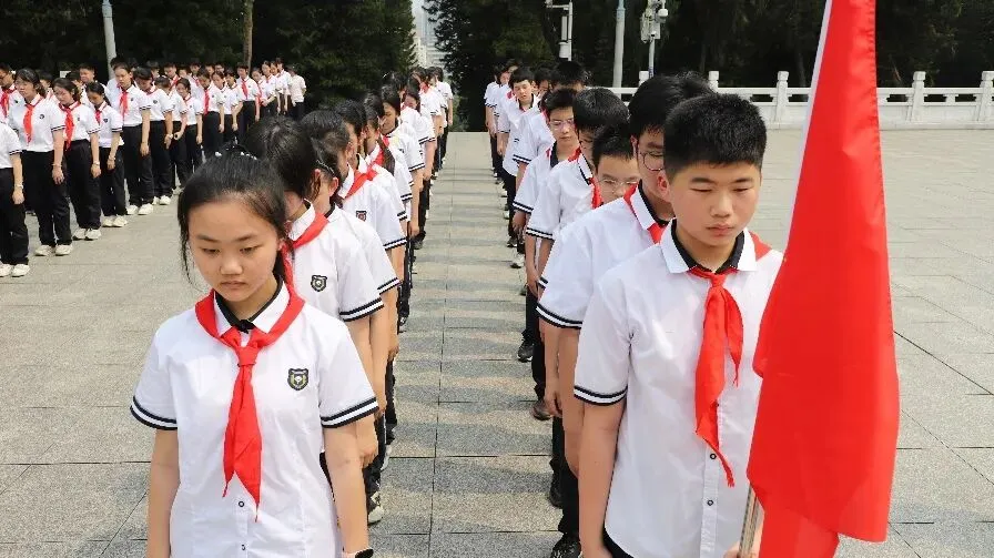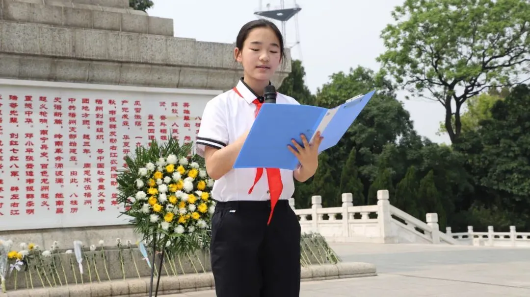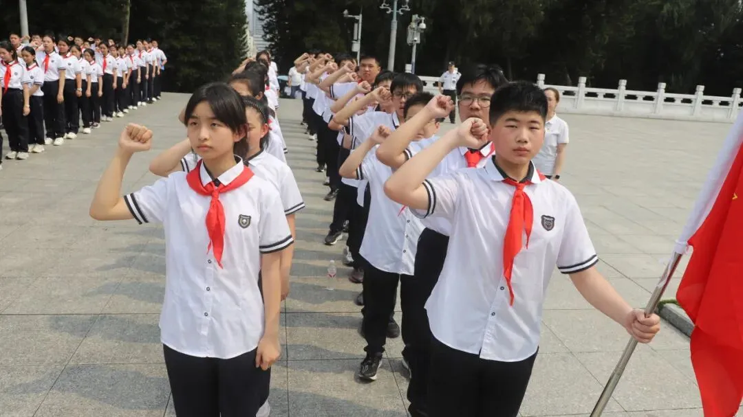 在活动现场,师生代表瞻仰烈士纪念碑、聆听英雄故事,队员面向队旗重温誓词,字字铿锵誓言回荡,于时空对话中感悟信仰的力量,让红色基因在血脉中奔涌,让英雄精神照亮报国之路。