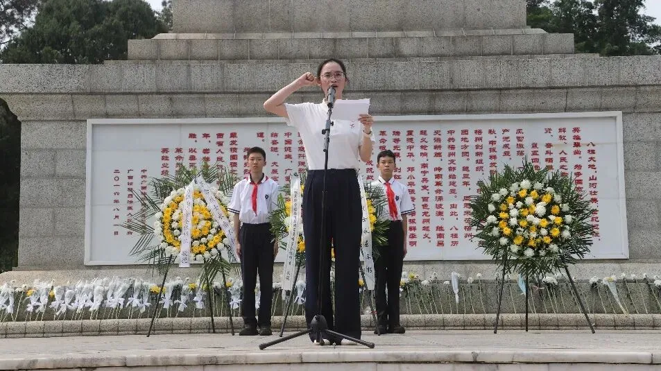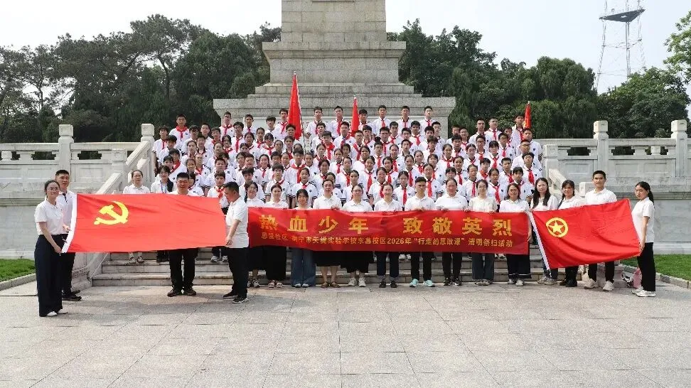 清明寄哀思,英烈永铭记。2026年4月7日下午,南宁市天桃实验学校教育集团东葛校区120余名党员、团员、队员代表前往南宁市人民公园革命烈士纪念碑开展祭扫活动。通过默哀致敬、敬献鲜花、重温誓词、朗诵祭文等形式,师生共同深切缅怀革命先烈,传承红色基因,担当强国重任,进一步坚定“听党话、跟党走”理想信念,激发矢志报国、奋发图强的内生动力。