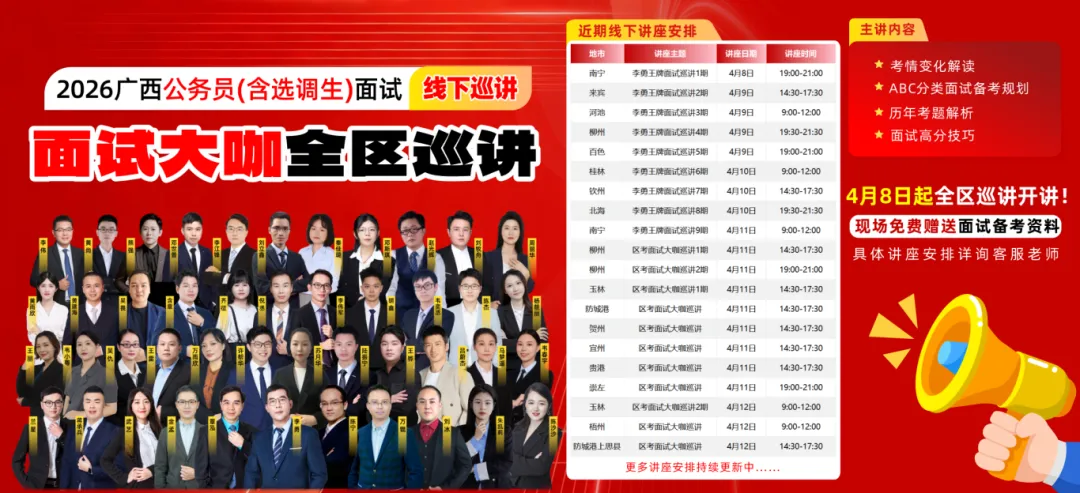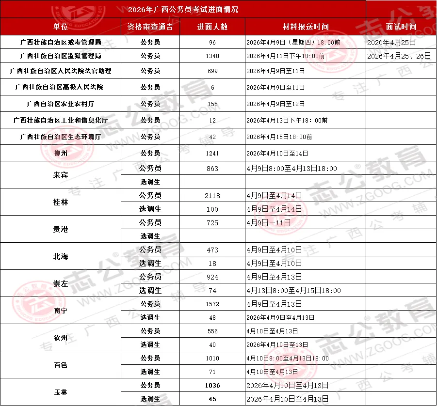13272人进面!26年广西监狱系统、南宁、柳州、玉林、百色公务员等多地发布面试资审、体测公告!