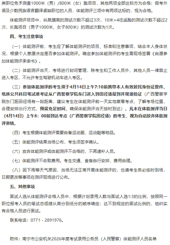 南宁市公安机关公务员(人民警察)体能测评通告